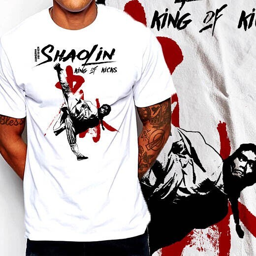 Kung Fu t-shirt retro Karate shaolin martial arts buddha monk Deadly Kick S-2XL