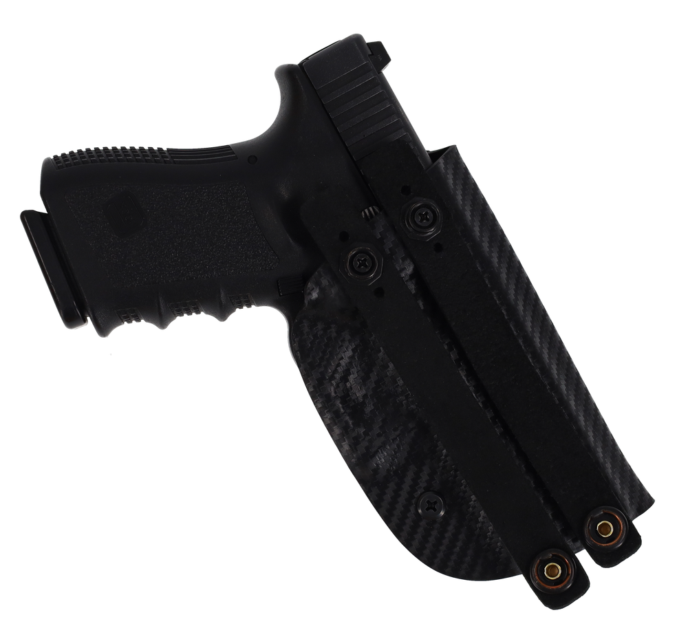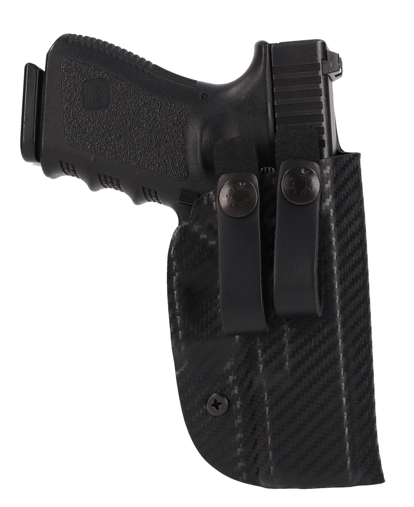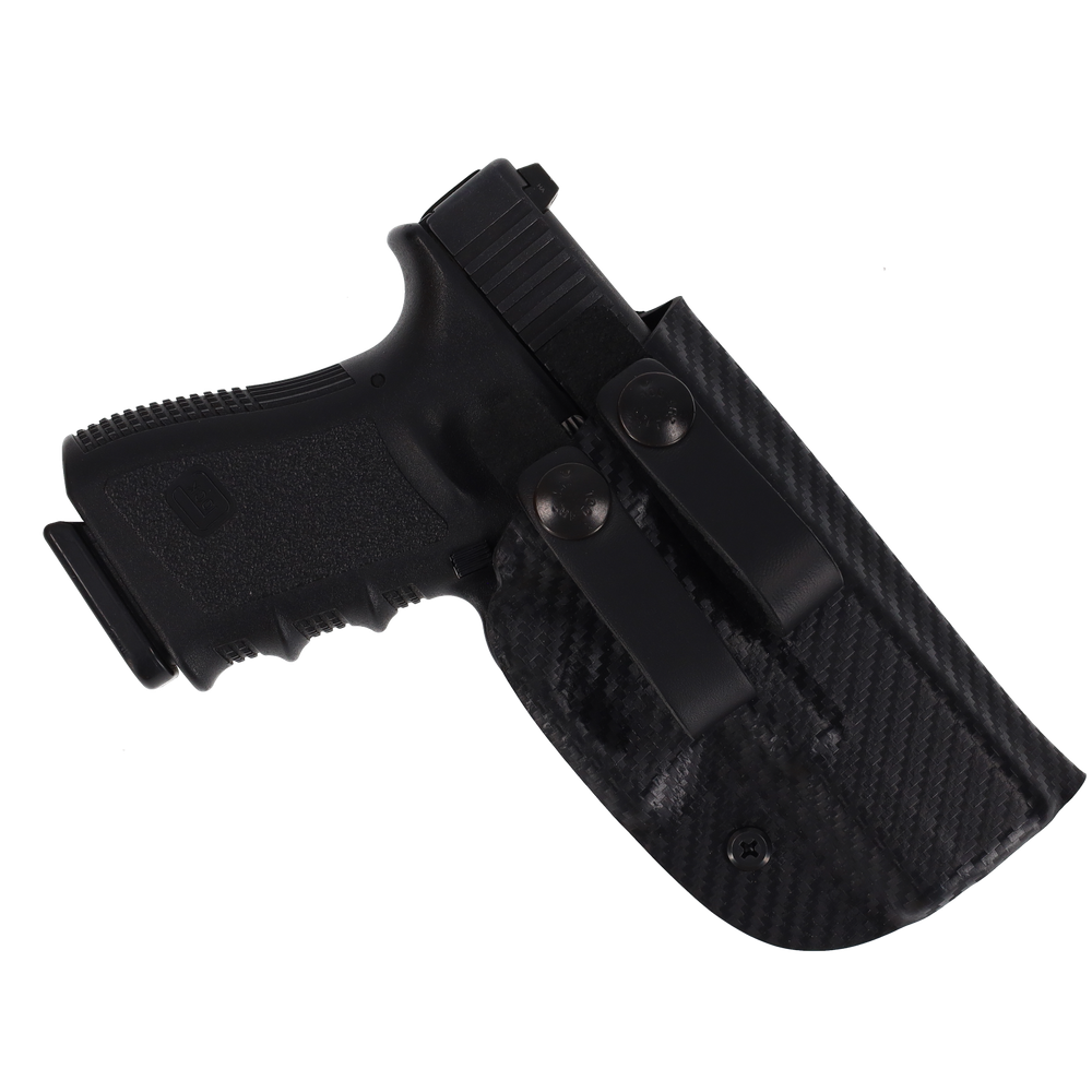 ***LEFT & RIGHT HAND AVAILABLE*** Holster Express is proud to provide our customers with high quality, handmade Kydex Holsters. Each holster is hand crafted in the USA. Our Inside the Waistband (IWB) holster is made out of a light weight .080 Kydex material that has been field tested and proven to be extremely durable in many conditions ADJUSTABILITY : This holster comes with two standard 1.5" - 1.75" Adjustable Leather Straps. This holster does support RMR, Threaded Barrel, and Tallsights, however, you will need to specify in the notes to the seller on checkout for us to make space for it. CONCEALMENT CARRY : This all Kydex (IWB) Inside the waistband holster is designed to hug the body and is contoured to fit along your hip. This design is ideal for open carry and concealed carry for smaller handguns if worn with a loose fitting shirt. We ship daily Monday - Friday via USPS. We do NOT ship on weekends or holidays so please keep this in mind. Most orders are shipped within the SAME or ONE business day of you placing your order. Orders placed on Friday, Saturday or Sunday will ship out Monday. If you are experiencing a delay, please contact us. HOLSTER FEATURES & SPECS: .080" Kydex (IWB) Inside the Waistband (2) Leather Straps with Adjustable Holes Made in the USA * This holster is NOT intended to be used on the OUTSIDE waistband.