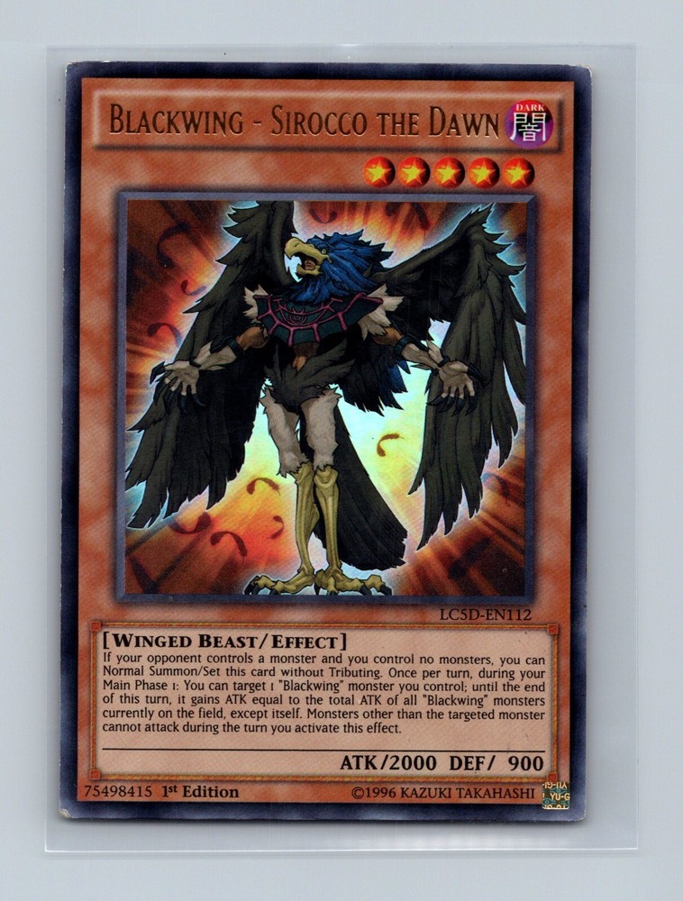 What is pictured is what is being sold, feel free to ask any questions. Item is in condition described in title. ALL CARDS ARE SCANNED WITH DOCUMENT SCANNER, ANY LINES THROUGH CARDS ARE FROM SCANNER NOT ON ACTUAL CARDS. document scanners show any imperfections in holos better than normal pictures so please be aware of that! Will be shipped in top loader. Make offer! Thanks for looking!!! Also, there is Discounted shipping and final price on multipule purchases from the store! The LC5D-EN112 Blackwing - Sirocco The Dawn is an ultra rare 1st edition card from the Yu-Gi-Oh! TCG collectible card game. This card, known as Sirocco the Dawn, is highly sought after by collectors and players alike for its unique abilities and rarity in the game. With its distinctive design and limited availability, this card holds significant value within the Yugioh community.