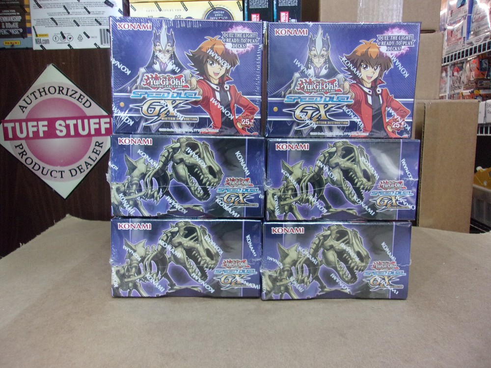 LOT OF (6) YU GI OH SPEED DUEL GX MIDTERM DESTRUCTION 25TH FACTORY SEALED BOXES EACH BOX CONTAINS 4 READY TO PLAY DECKS 4 SECRET RARE UPGRADES 12 BRAND NEW SKILL CARDS NO INTERNATIONAL SHIPPING