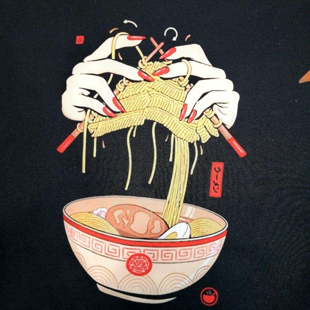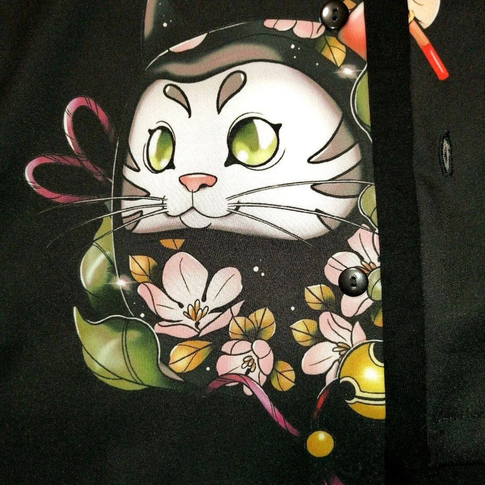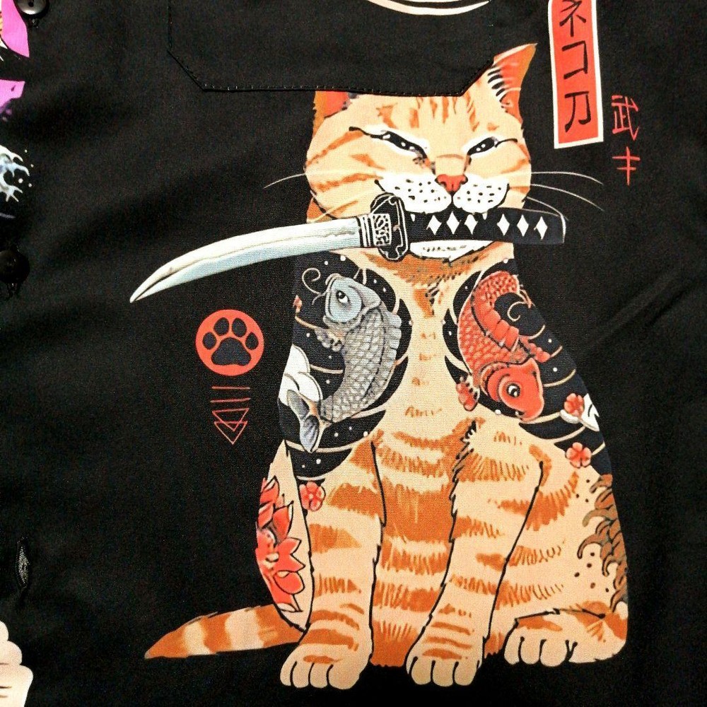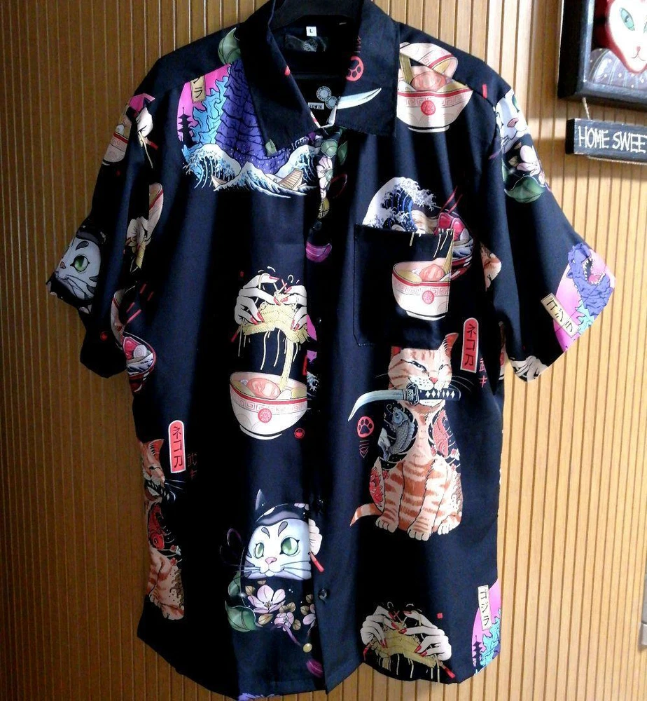 This shirt is so fun and unique! The Godzilla cat ramen design is quirky and eye-catching, and the fabric is soft and comfortable. Fits true to size, and the print quality is excellent. Super fast shipping from Japan—very happy with this purchase! Perfect for casual wear or as a fun statement piece. Highly recommend!