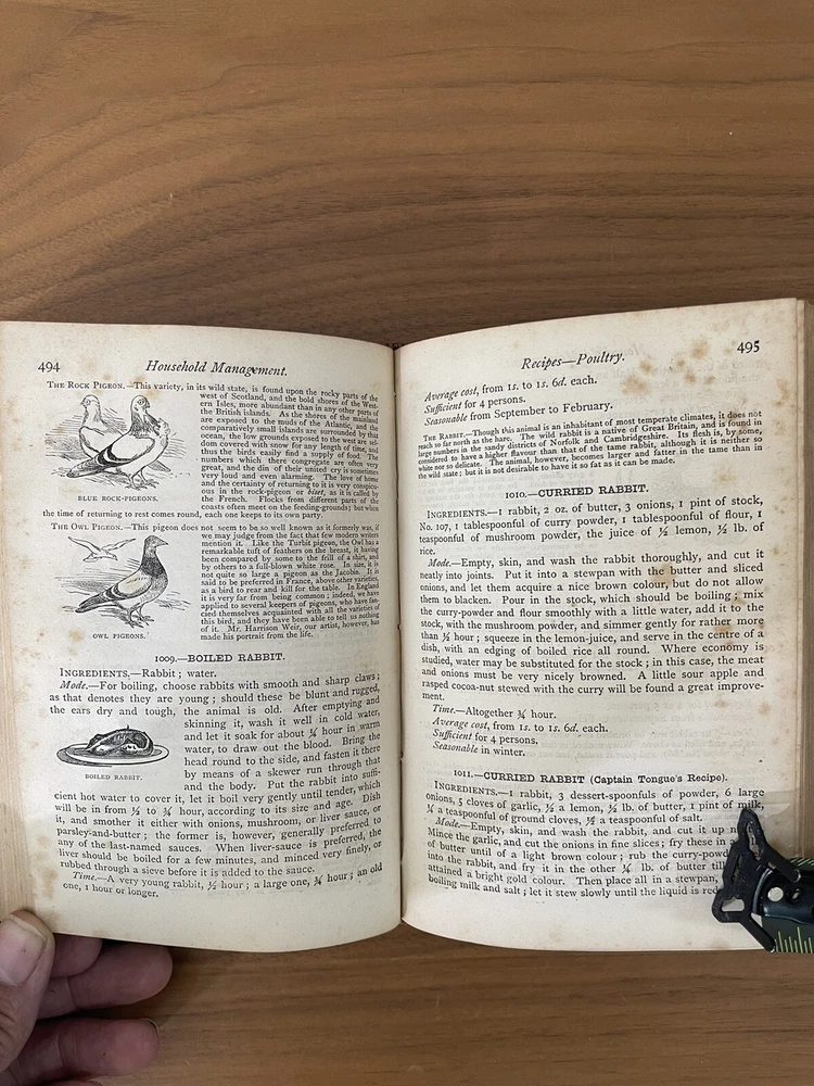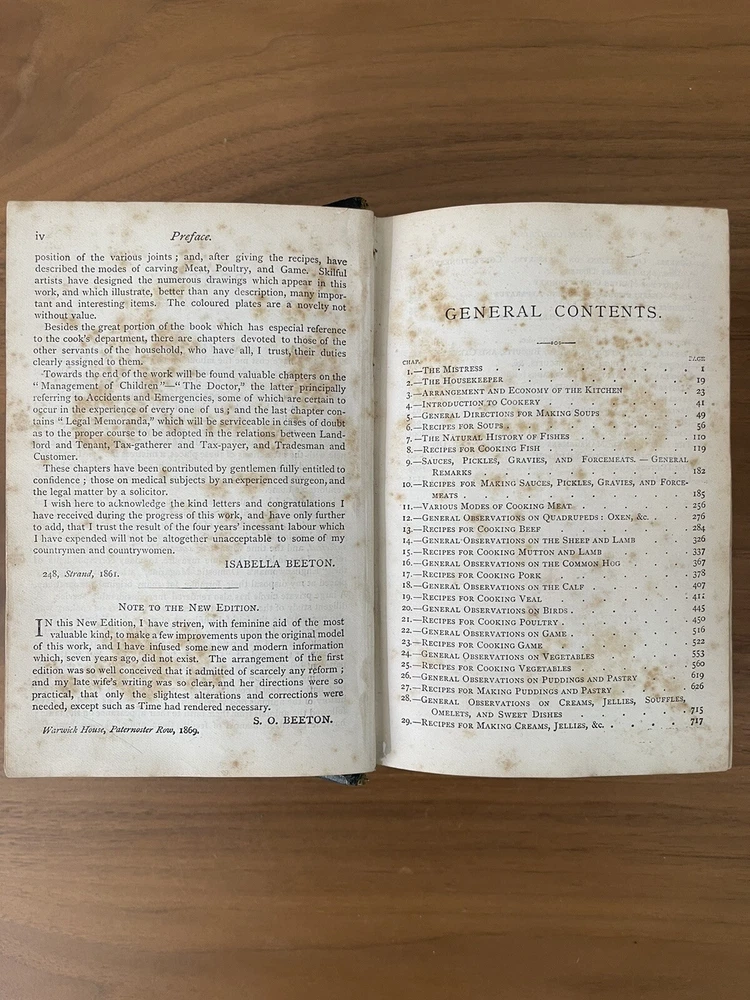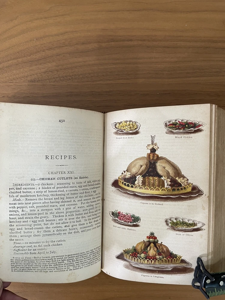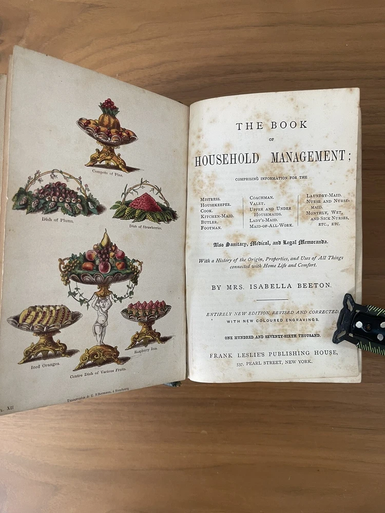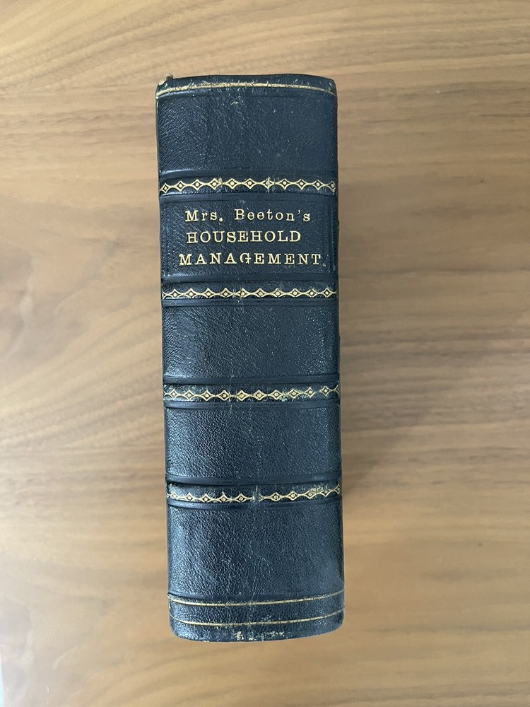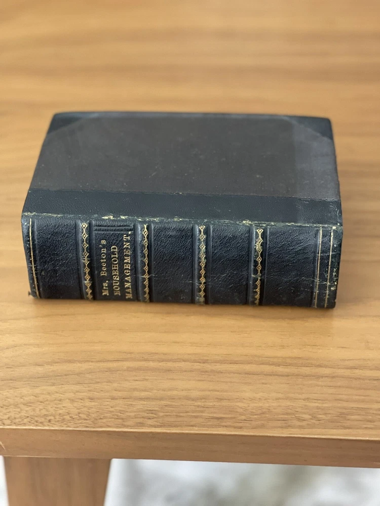 Leatherbound , Mrs beeton's household Management 1869-1870’s edition RARE. In very good condition for it’s age. The binding and all pages perfect in tacked. There is minor spotting on pages throughout the book Attention all cookbook collectors! Expand your collection with a true gem - the Leatherbound Mrs. Beeton's Household Management 1869-1870's Edition! This rare edition is a true piece of history, providing a glimpse into the world of Victorian-era cooking and homemaking. With over 2000 recipes, tips, and tricks for maintaining a household, this cookbook is a must-have for any serious collector. The luxurious leather binding makes it a beautiful addition to any bookshelf or collection display. Don't miss your chance to own such a unique piece of culinary history.