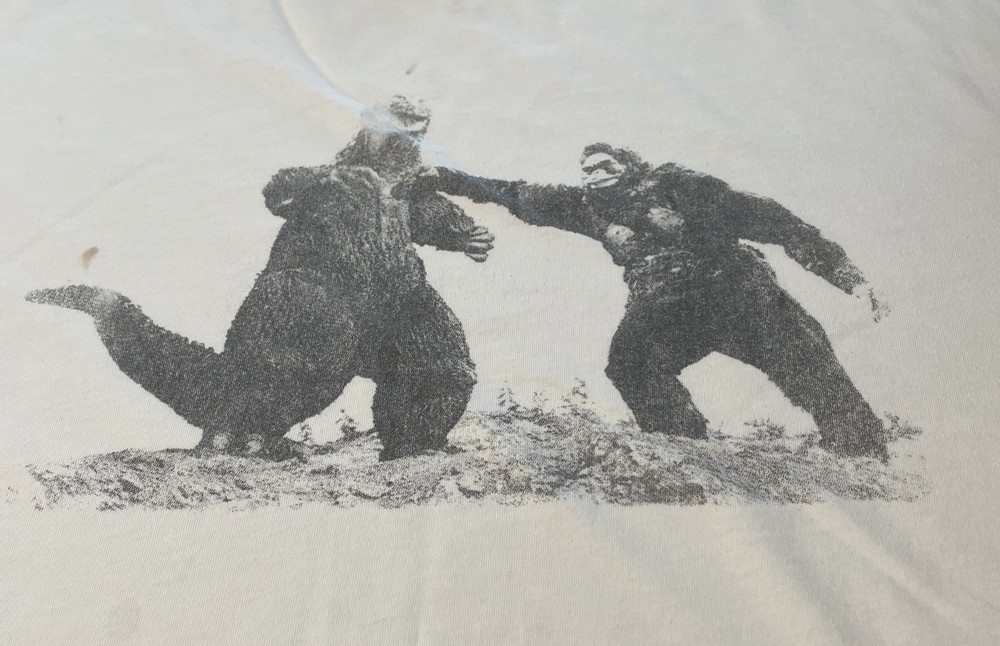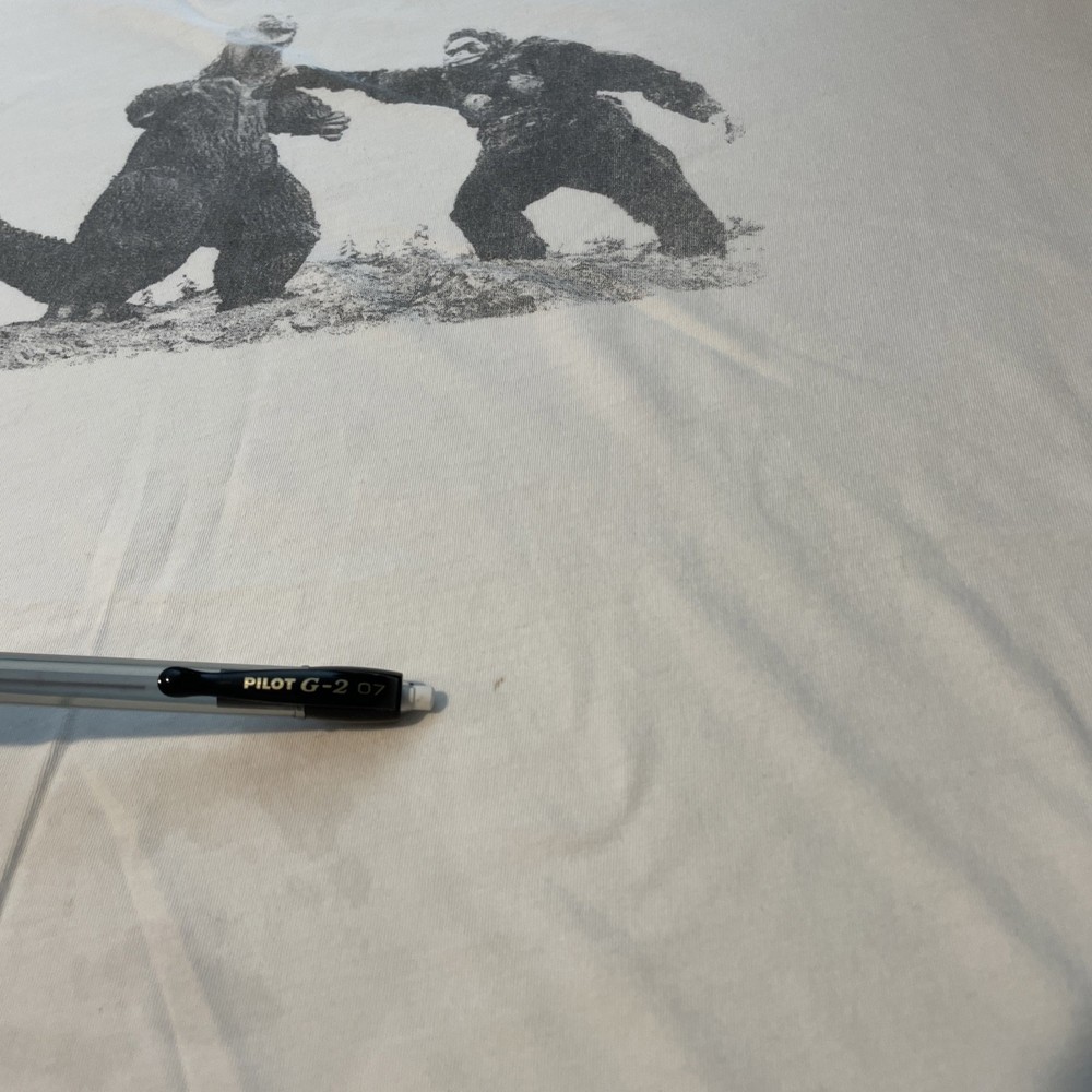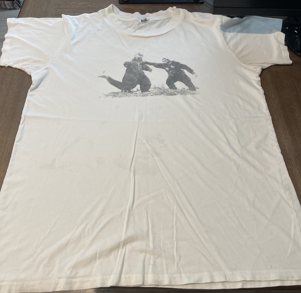 Local Boogeyman-Godzilla vs. Kong T-shirt in white size Men’s Large. Lightly worn, does have some signs of wear. Please see photos-there are a couple of light stains on front of the shirt as shown. Overall great shape-very soft material. Thanks for looking!