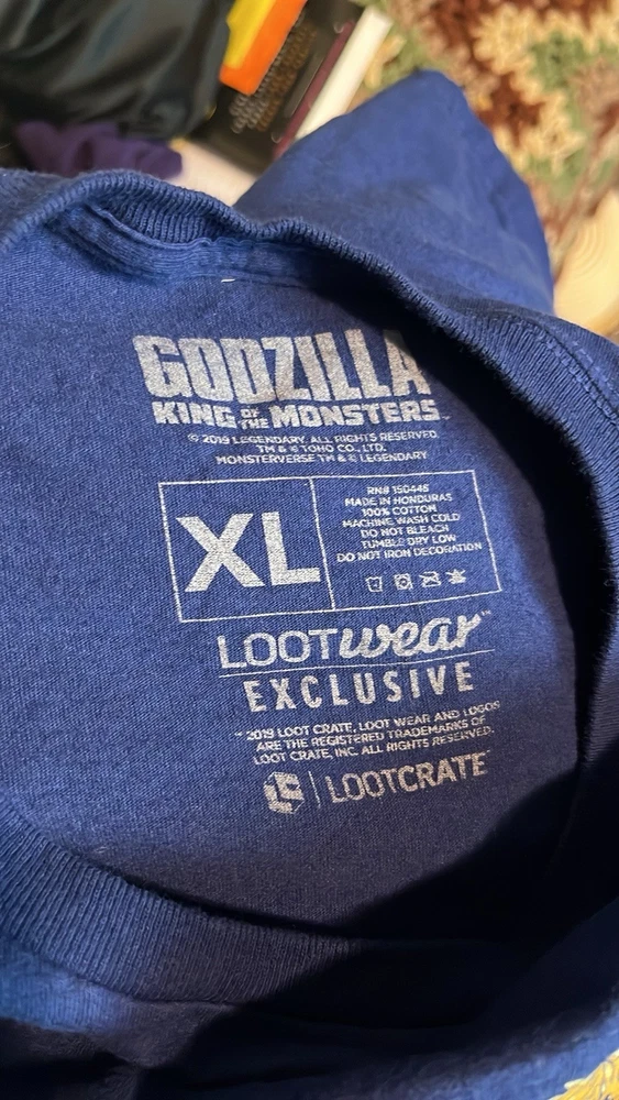 Loot Crate brand graphic tee. Fantastic Godzilla and dragon imagery! In good preowned condition, see photos. Pit to pit laying flat across measures 22" Shoulder to bottom is 28" From a cat friendly home. All measurements are approximate. Colour may vary slightly from photo due to lighting. Shipped with Canada Post. Please pay within three days of purchase. Feedback is greatly appreciated! Message me with any questions! Happy shopping!