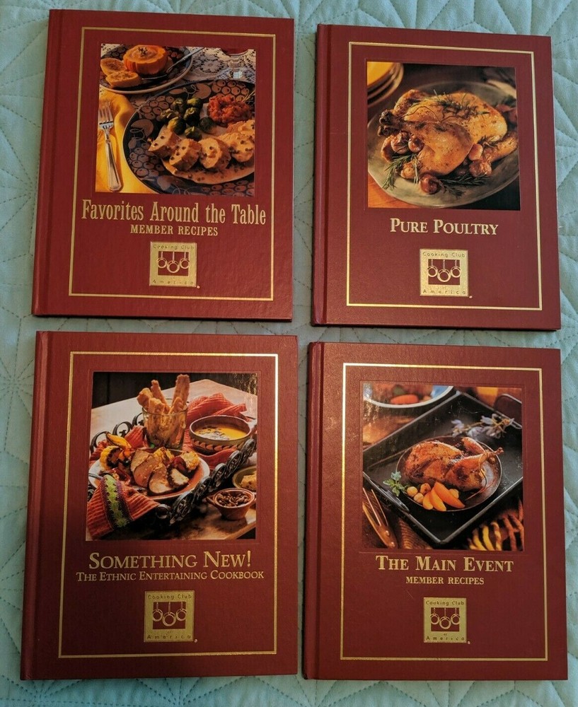 Lot Of 4 Cooking Club Of America Cookbooks Hardcover. Condition is "Like New". Shipped with USPS Media Mail. *Something New! The Ethnic Entertaining Cookbook - 2004 - 192 pg *The Main Event - Member Recipes - 2004 - 176 pg *Pure Poultry - 2000 - 175 pg *Favorites Around The Table - Member Recipes - 2004 160 pg ************************************************** Our feedback rating is very important to us. Our goal is to have 100% Happy Customers and 100% Positive Feedback 100% of the time. Unexpected issues and mistakes can happen. We ask that you give us a chance to resolve any issues before leaving negative feedback. Give us a chance to make it right. We are re-sellers of used and new merchandise. The items you order will arrive in a well-packed, recycled/reused box, not in a new, pretty one! We reuse packing material as well and encourage others to do so as well. We understand that sometimes you have to return an item for whatever reason. we do accept returns, however, the buyer will be responsible for the return shipping cost. Shipping: Seller reserves the right to change the shipping carrier provided that the estimated delivery date is within 2-3 business days of the original estimated delivery date. Thank You!