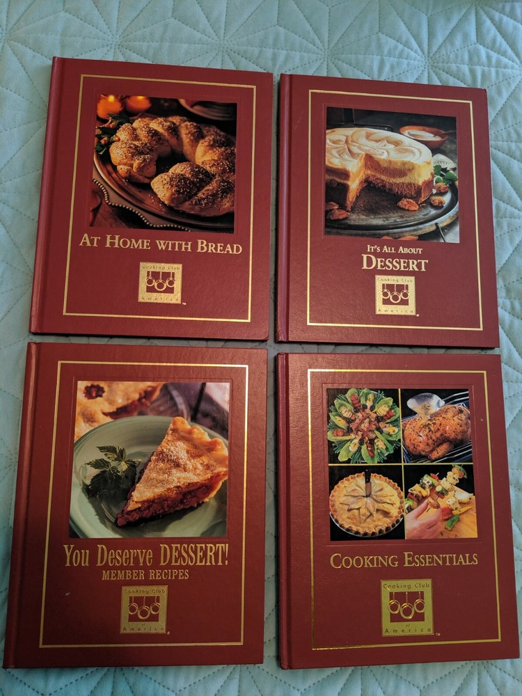 Lot Of 4 Cooking Club Of America Cookbooks. Condition is "Like New". Shipped with USPS Media Mail. *At Home With Bread - 2002 - 176 pg *It's All About Dessert - 2002 - 192 pg *You Deserve Dessert - 2000 - 176 pg *Cooking Essentials - 1997 - 168 pg ************************************************** Our feedback rating is very important to us. Our goal is to have 100% Happy Customers and 100% Positive Feedback 100% of the time. Unexpected issues and mistakes can happen. We ask that you give us a chance to resolve any issues before leaving negative feedback. Give us a chance to make it right. We are re-sellers of used and new merchandise. The items you order will arrive in a well-packed, recycled/reused box, not in a new, pretty one! We reuse packing material as well and encourage others to do so as well. We understand that sometimes you have to return an item for whatever reason. we do accept returns, however, the buyer will be responsible for the return shipping cost. Shipping: Seller reserves the right to change the shipping carrier provided that the estimated delivery date is within 2-3 business days of the original estimated delivery date. Thank You!