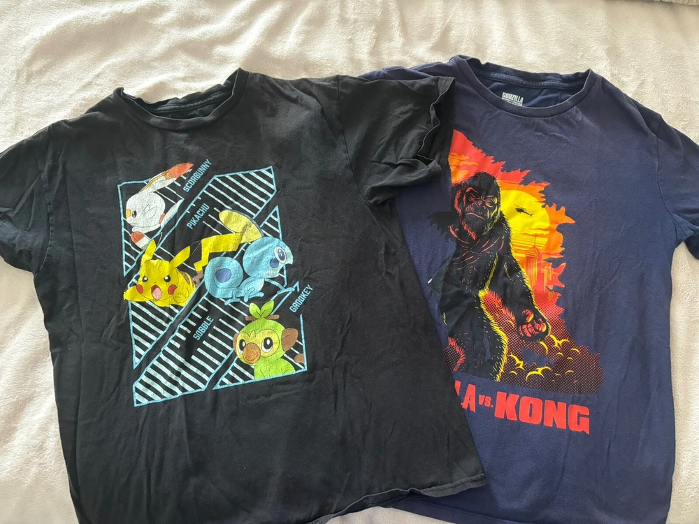 Lot W/ 2 Boys Short Sleeve T-Shirts Pokémon Size L L Godzilla Vs Kong XL (14-16). Condition is Pre-owned. Shipped with USPS Ground Advantage.