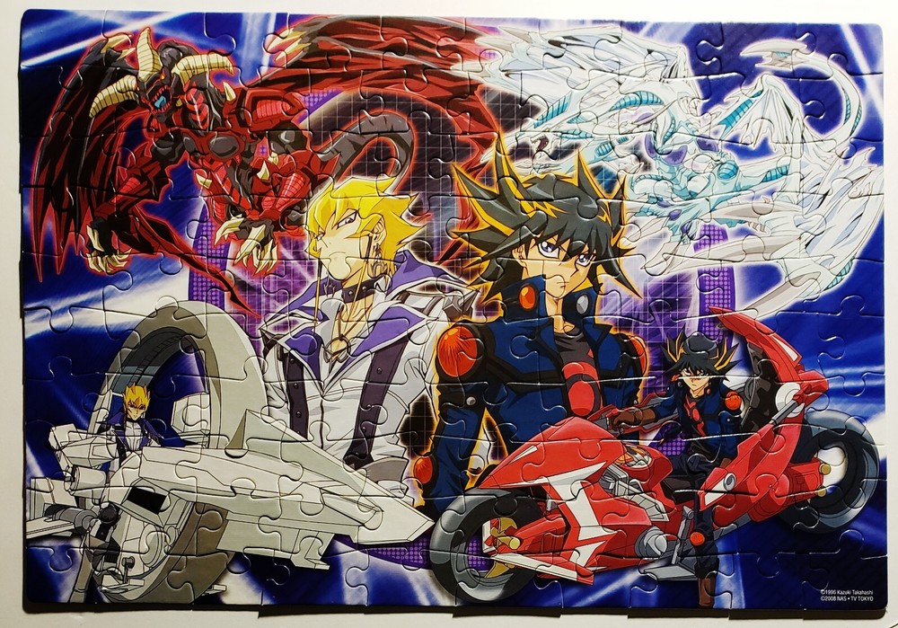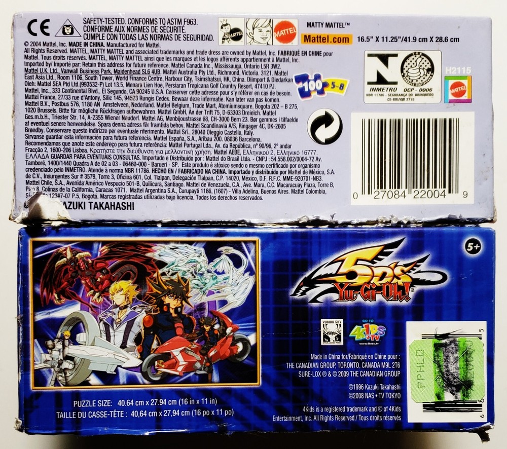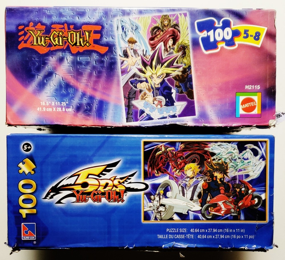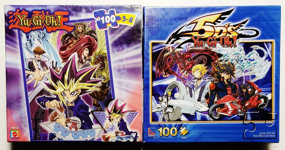You are buying a lot of two Yu-Gi-Oh! 100-Piece Jigsaw Puzzles. This lot includes a "Yu-Gi-Oh! The Movie" (Mattel, 2004) and a "Yu-Gi-Oh! 5D's" puzzle (Sure-Lox, 2009). "The Movie" puzzle measures approximately 16.5" x 11.25" when completed, and the "5D's" puzzles measures appoximately 16" x 11". Both puzzles are in good used condition, with no notable visible wear. Both puzzles are complete in box. Please see pictures for details. Thank you for looking!