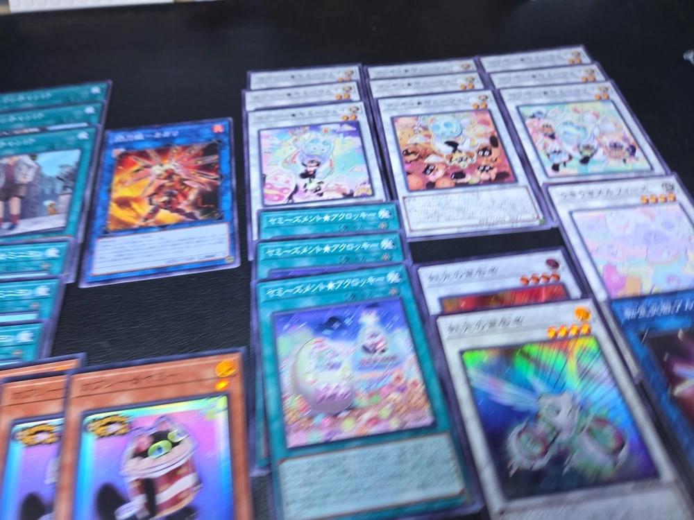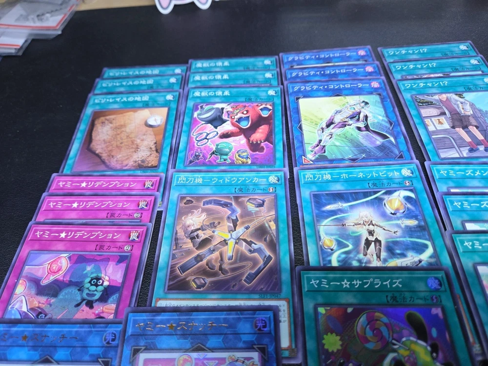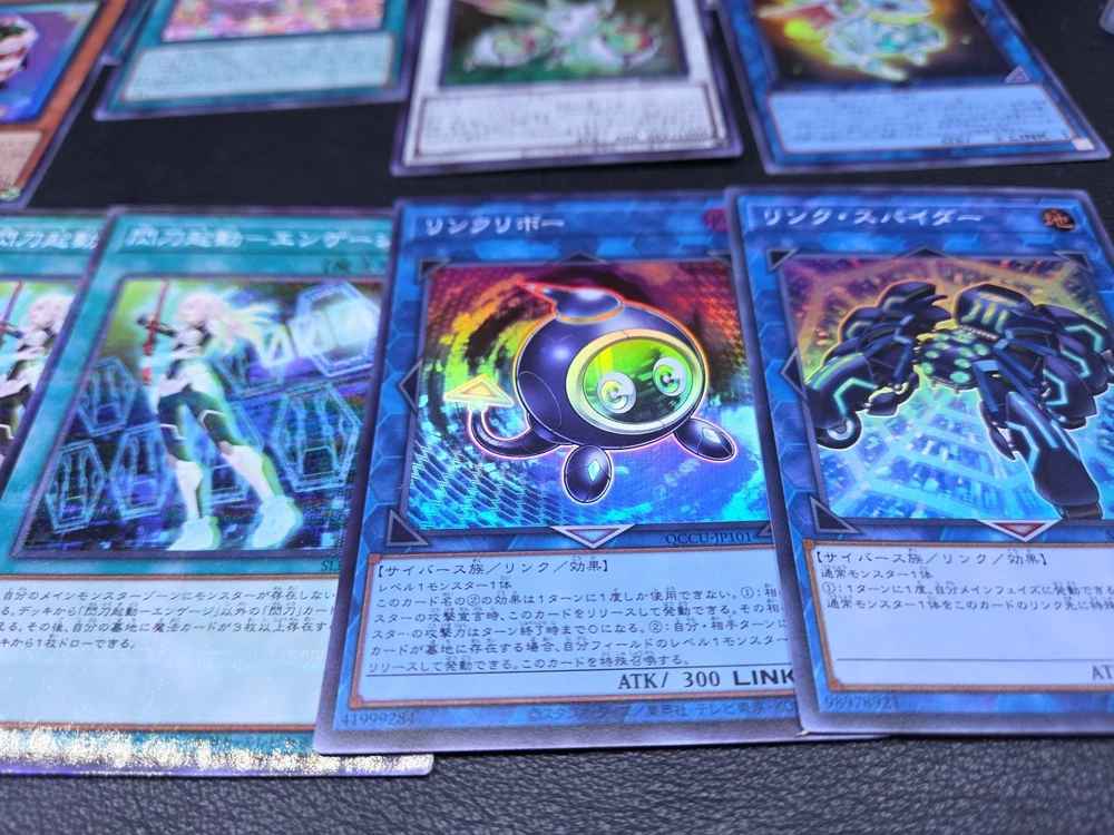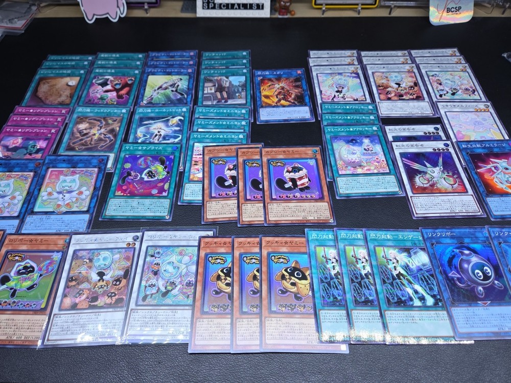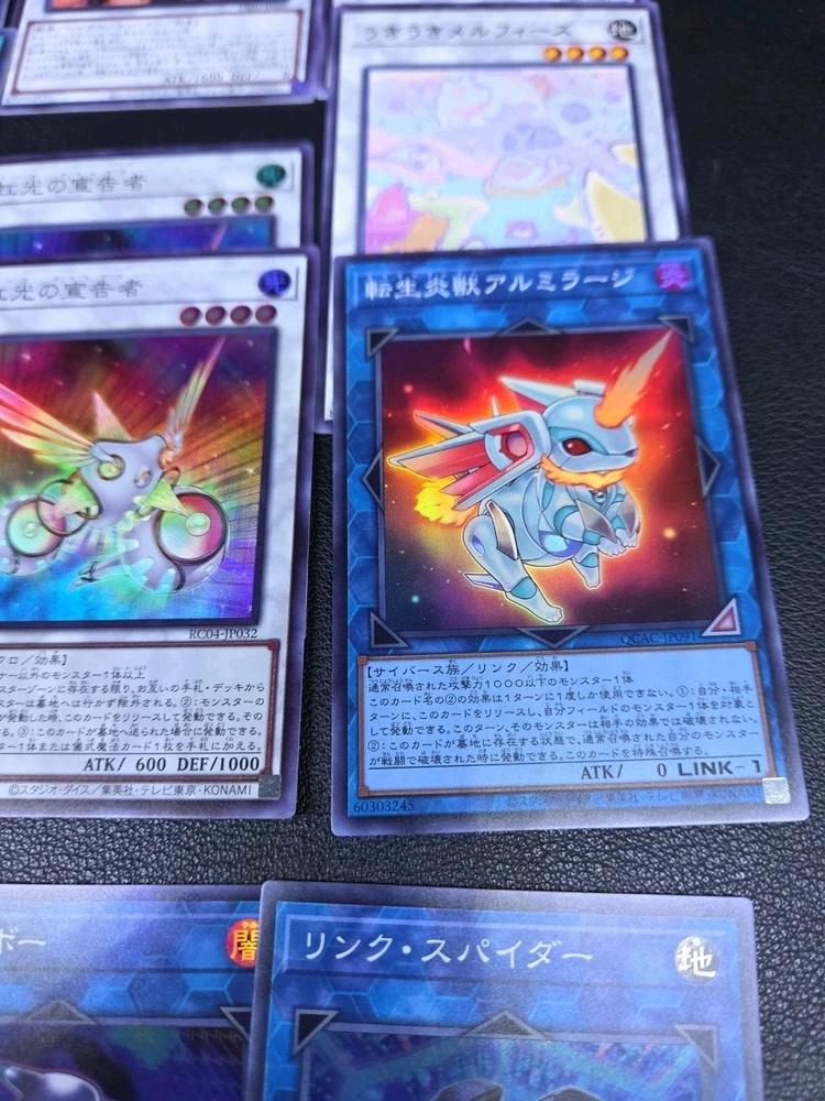 This product is a lot of 55 Japanese Yu-Gi-Oh! cards featuring characters like Seto Kaiba and Joey Wheeler. The cards are from the Yu-Gi-Oh! 5D's and Yugi sets, with a focus on red atttributes and fusion card types. They are English language cards manufactured by Konami, with various limited edition and 1st edition features. The collection includes holo and foil finishes, making it a desirable addition for collectors and players of the Yu-Gi-Oh! TCG.