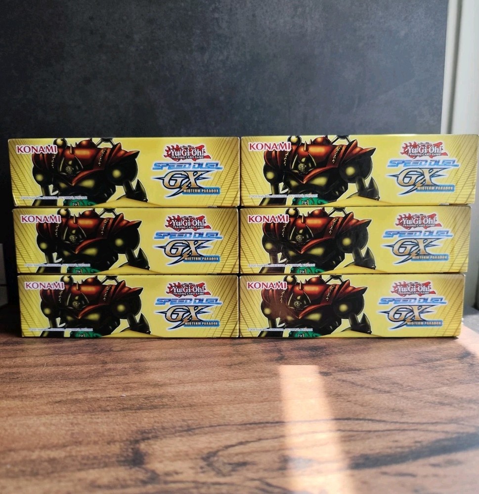 Lot of 6 Yugioh Speed Duel GX Midterm Paradox Mini Boxes All Factory Sealed! 4 Decks + Promos per box Authentic Konami USA Version You are guaranteed to get 6 Speed Duel GX Midterm Paradox Boxes. Each box has 4 speed duel decks and a promo pack. Each box is brand new, factory sealed! Northern Odds and Ends will not accept returns on this item.