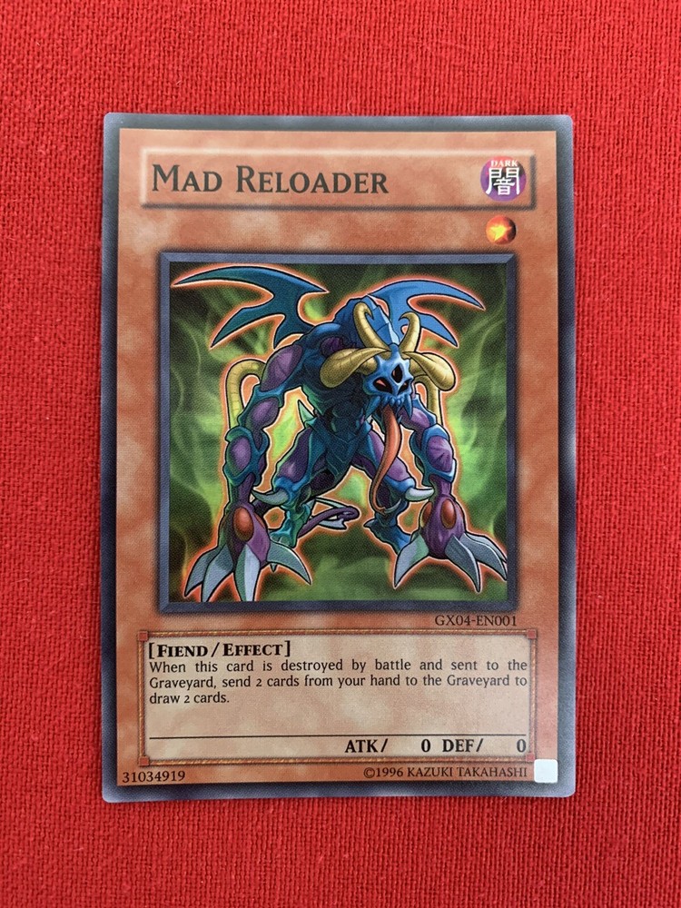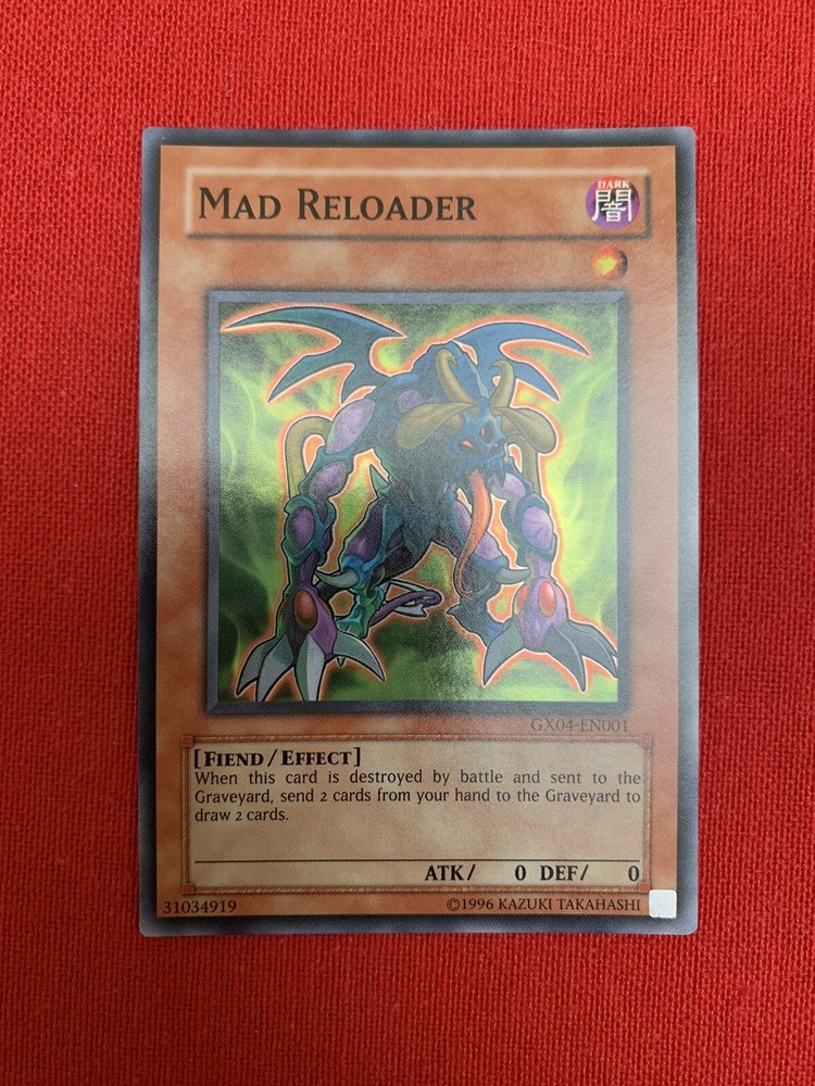Mad Reloader (GX04-EN001) Yu-Gi-Oh! Fiend Monster Card. The card is in very good condition (please see the images) Mad Reloader (GX04-EN001) - Fiend / Effect - Foil (shiny) - Very Good Condition The item will be dispatched with Royal Mail 2nd Class Letter.