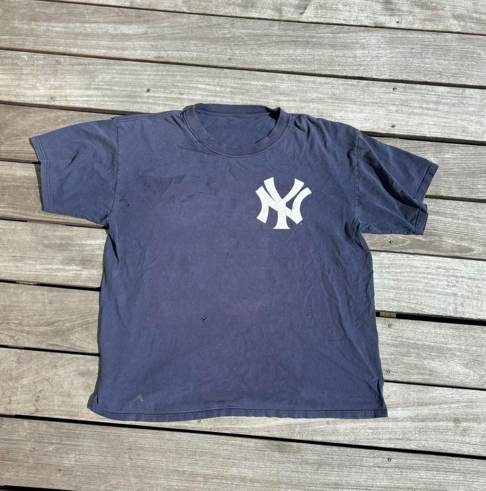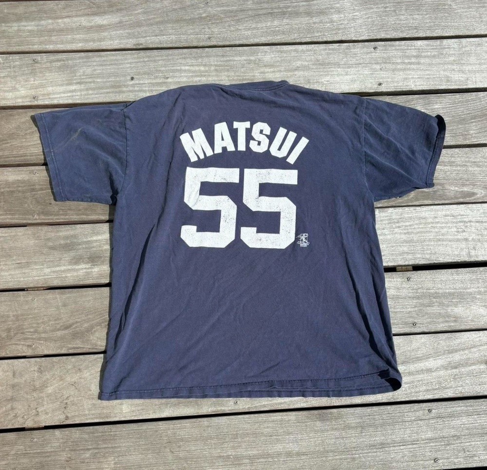 The Majestic New York Yankees Hideki Matsui #55 Jersey Shirt in Men's Size XL is an officially licensed shirt featuring the player's name and number. Made by Majestic, this blue shirt represents the New York Yankees team in Major League Baseball. It is meant for regular season games and is designed for male fans looking to show their support for the team. Perfect for any baseball enthusiast wanting to represent their favorite player and team on game days. Condition as is, typical vintage garment holes throughout, consult photos.