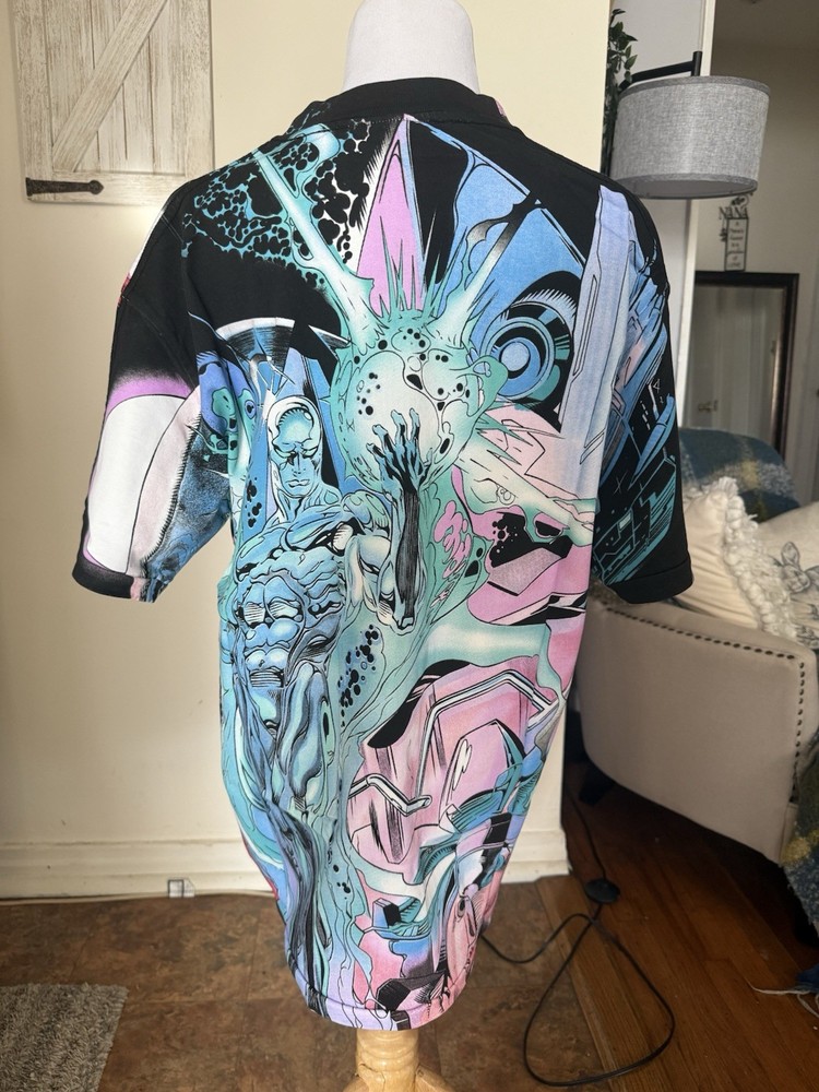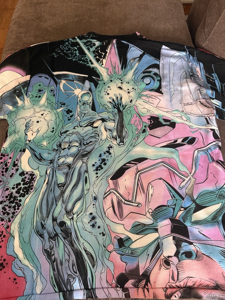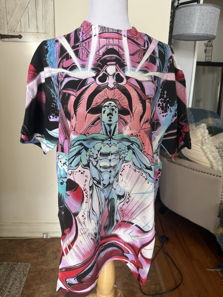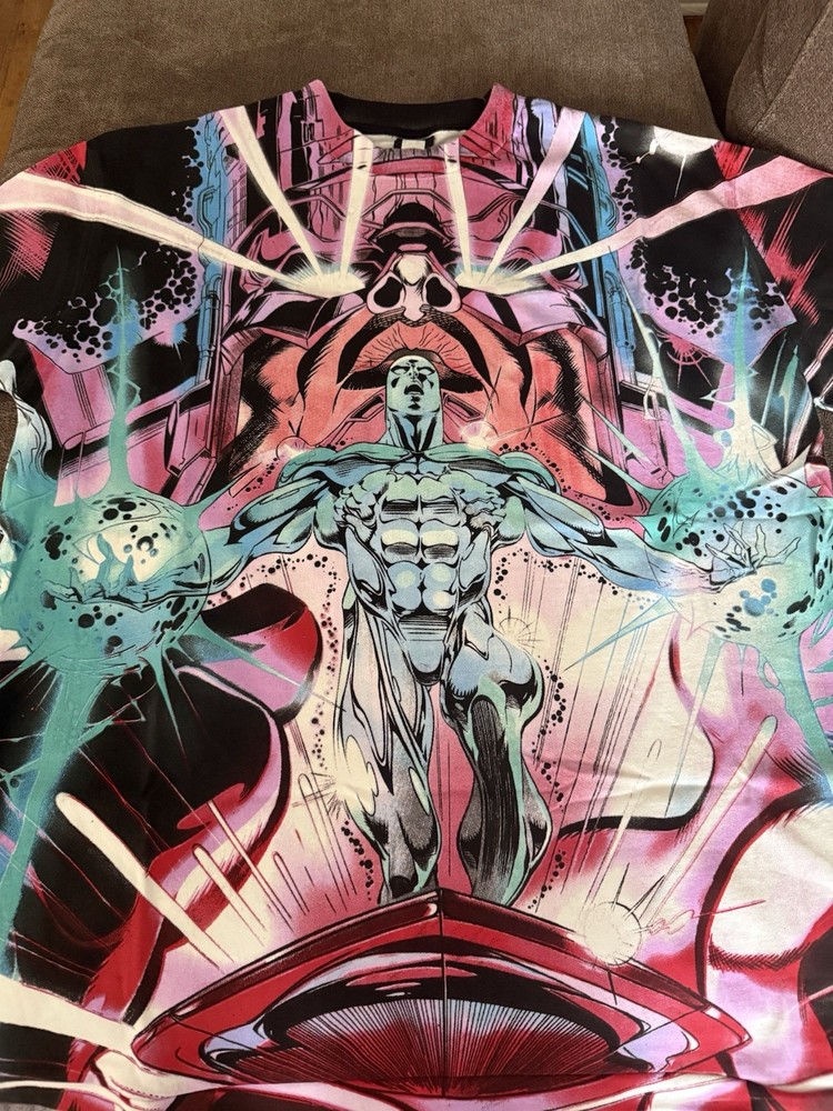 This Marvel Silver Surfer and Galactus tee is awesome! The vibrant print looks amazing, and the cotton blend is super soft and comfy. Perfect fit, great for casual wear or showing off your Marvel love. The silver color with plaid detail makes it stand out—definitely a must-have for any fan!