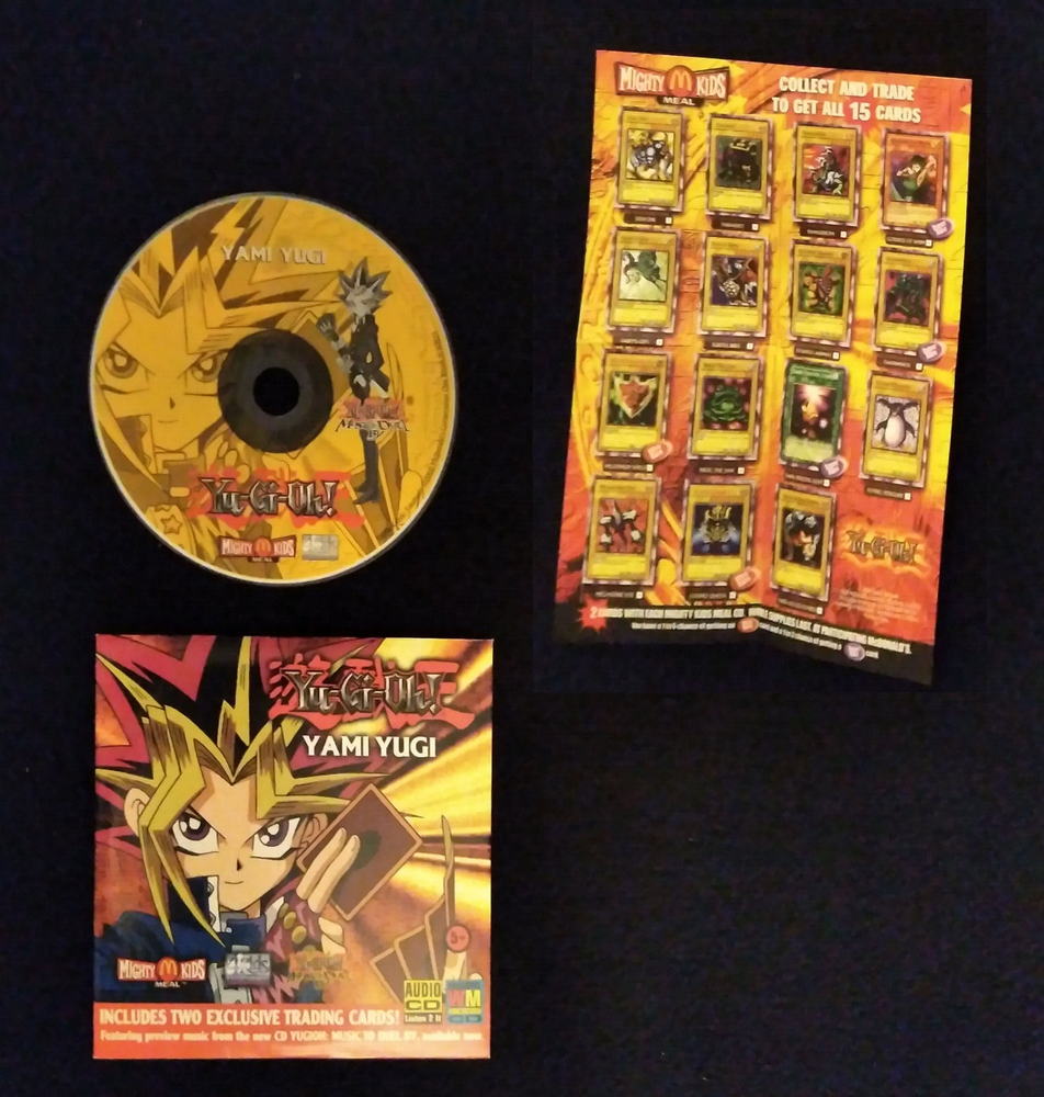 Relive your favorite Yu-Gi-Oh! moments with this rare collectible Mighty Kids Meal toy featuring Yami Yugi. This limited edition CD (part of the Yu-Gi-Oh! franchise) is a must-have for any true fan. Don't miss out on the opportunity to own a piece of Yu-Gi-Oh! history. This has been opened and someone has taken the cards so it’s the CD only with the cover and original checklist.