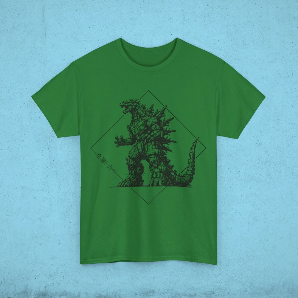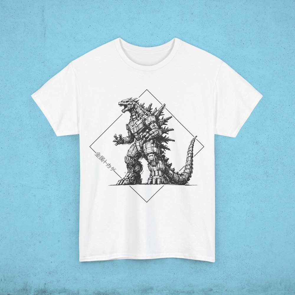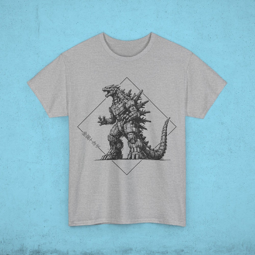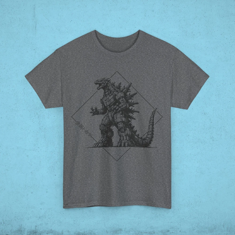 This Mecha Godzilla T-Shirt gives off a cool and edgy vibe, perfect for fans of the iconic monster. Whether worn casually or at a themed event, this T-Shirt is sure to make a statement. Ideal for adults who appreciate unique and creative apparel. Relevant for comic-cons, movie premieres, and geek-themed occasions. Product features - Strong and smooth fabric - Ribbed knit collar for elasticity - Twill tape shoulder tape for stability - Ethically grown and harvested US cotton - Suitable for adults Care instructions - Machine wash: warm (max 40C or 105F) - Non-chlorine: bleach as needed - Tumble dry: medium - Do not iron - Do not dryclean Made with medium fabric (5.3 oz/yd² (180 g/m²)) consisting of 100% cotton for year-round comfort that is sustainable and highly durable. .: The classic fit of this shirt ensures a comfy, relaxed wear while the crew neckline adds that neat, timeless look that can blend into any occasion, casual or semi-formal. .: The tear-away label means a scratch-free experience with no irritation or discomfort whatsoever. .: Made using 100% US cotton that is ethically grown and harvested. Gildan is also a proud member of the US Cotton Trust Protocol ensuring ethical and sustainable means of production. S M L XL 2XL 3XL 4XL 5XL Width, in 18.00 20.00 22.00 24.00 26.00 28.00 30.00 32.00 Length, in 28.00 29.00 30.00 31.00 32.00 33.00 34.00 35.00 Sleeve length (from center back), in 15.10 16.50 18.00 19.50 21.00 22.40 23.70 25.00 Size tolerance, in 1.50 1.50 1.50 1.50 1.50 1.50 1.50 1.50