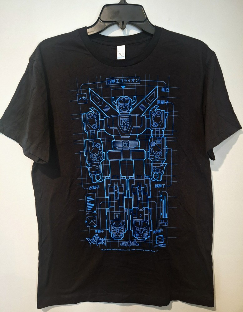 28 inches long 19 inches arm pit to pit Very nice like new condition. Does not appear to be worn or washed but I'm listing as pre-owned because there are no tags. Cool modern but throwback old school front graphic shirt from the 1980s era of Saturday morning cartoons! Voltron, Thundercats, Transformers, G.I. Joe Funimation