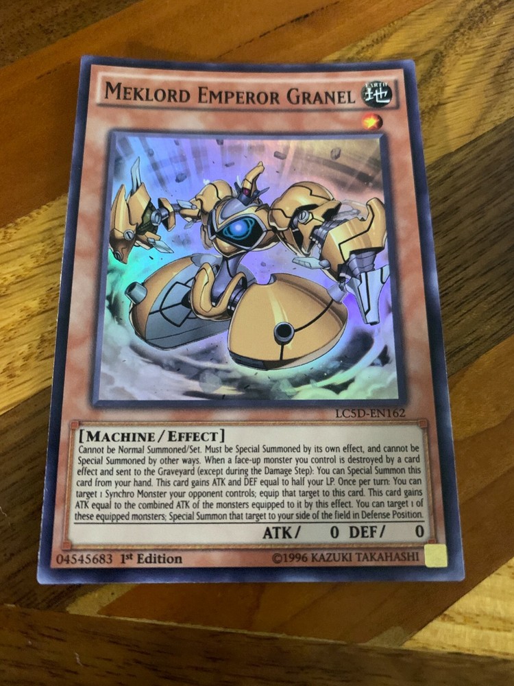 Hello! You are buying one Meklord Emperor Granel LC5D-EN162 1st Edition Super Rare in very lightly played condition. Reason for very lightly played condition is extremely minor general play/edgewear. See photos for details! As a thank you for buying from me, I will throw in two free Yugioh commons! Thank you so much for looking, have a great day! If there is ever an issue, please let me know so I can do whatever I can to resolve it! Please check out my other items! I have many more single cards!