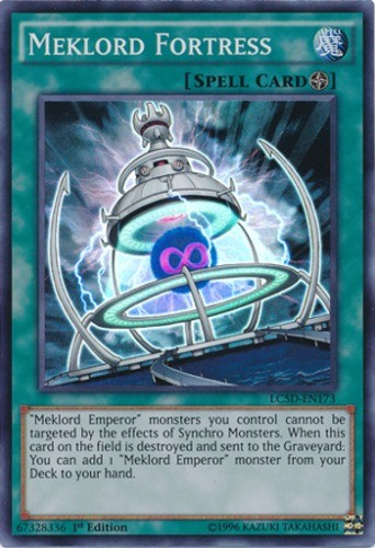 Meklord Fortress - LC5D-EN173 - Super Rare - 1st Edition Image is a stock photo of the card. You will receive the card in Moderately Played condition Condition: Moderately Played ATK/DEF : Attribute : Spell Card Number : LC5D-EN173 Card Rules : Card Text : Face-up "Meklord Emperor" monsters you control cannot be targeted by the effects of Synchro Monsters. When this card on the field is destroyed and sent to the Graveyard, you can add 1 "Meklord Emperor" monster from your Deck to your hand. Card Type : Field Spell Card Edition : 1st Level : Monster Type : Name : Meklord Fortress Passcode : 67328336 Pendulum Scale : Rarity : Super Rare Set : Legendary Collection 5D's Mega Pack Be sure to visit our store for a wide selection of your favorite cards! We are running specials RIGHT NOW!! Shipping Options: ~Ships in a regular white envelope with a stamp for FREE! (THERE IS NO TRACKING INFORMATION AVAILABLE FOR THE ABOVE METHOD. SHIPPING TIME IS 4-10 BUSINESS DAYS) ~Shipments are handled same or next business day. ~ FREE SHIPPING for each additional card, so shop around our store!