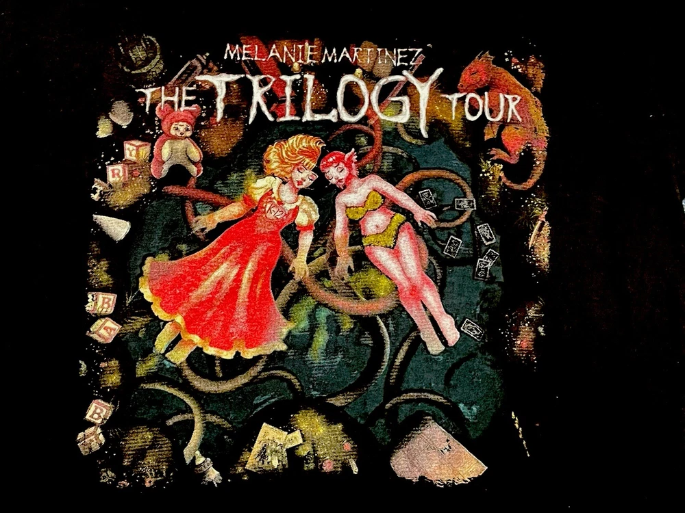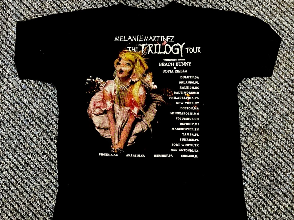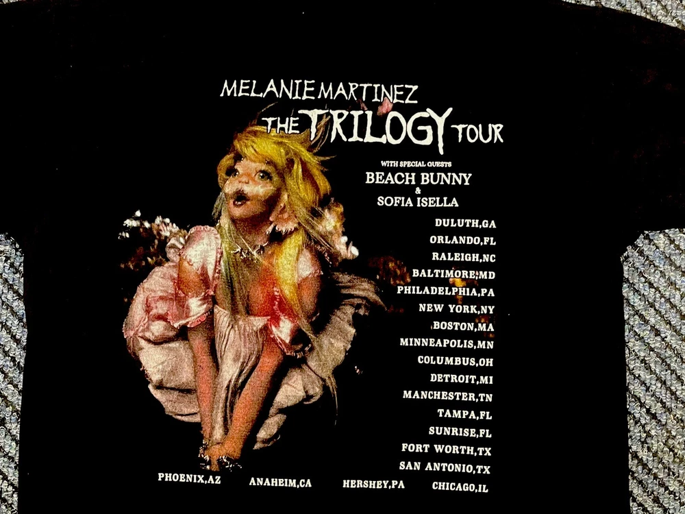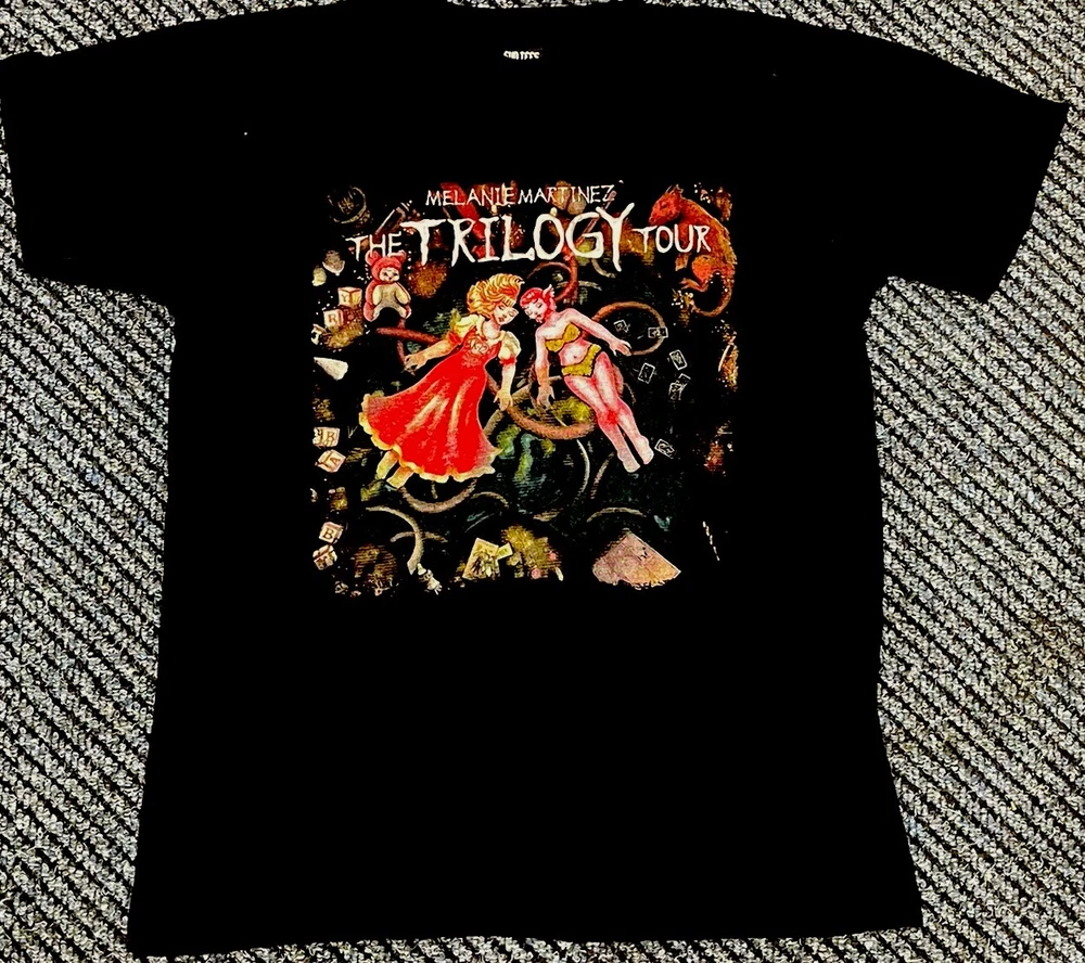 Get ready to rock the Melanie Martinez The Trilogy Tour 2024 T-Shirt featuring the iconic Godzilla character. This two-sided shirt is perfect for any season and features a crew neckline, short sleeves, and a regular fit. The black cotton material is machine washable, making it easy to care for. The shirt is a size L and comes from the Sun Tees brand. It's a great addition to any wardrobe and perfect for fans of the Godzilla franchise. The shirt is perfect for unisex adults and has a movie, classic, and funny theme. Don't miss out on this unique piece of clothing that showcases your love for the Trilogy Tour. New without tags!