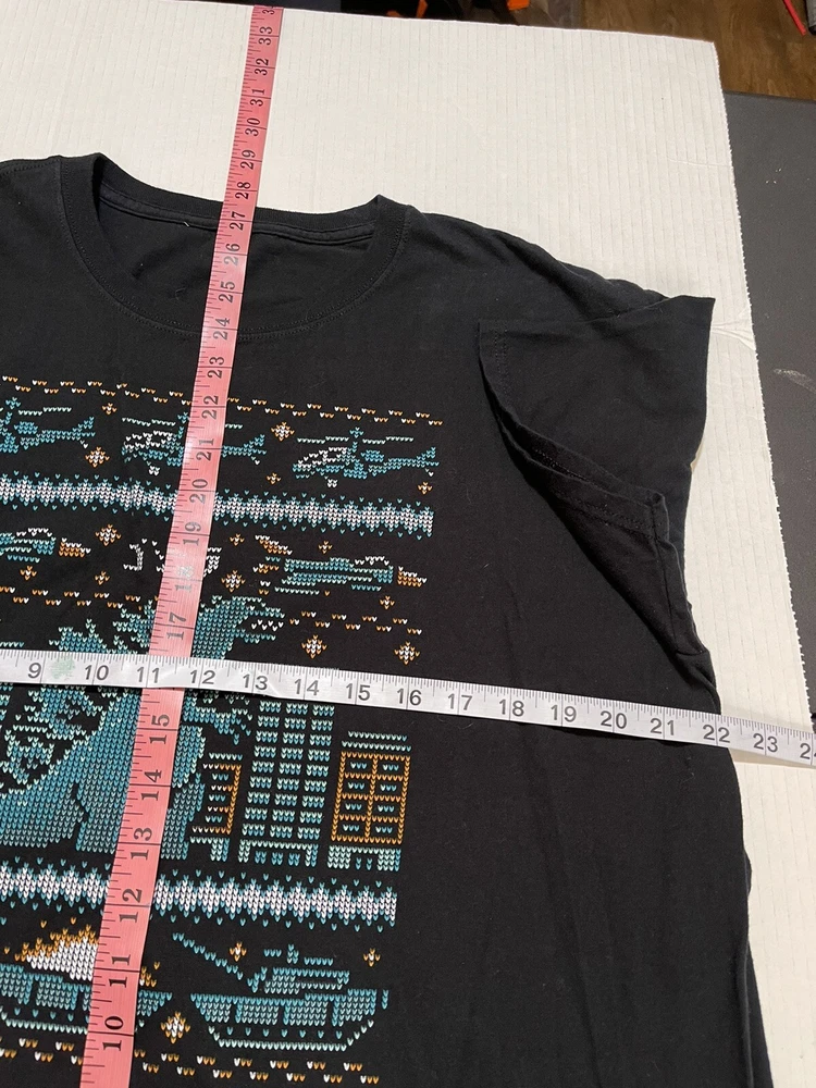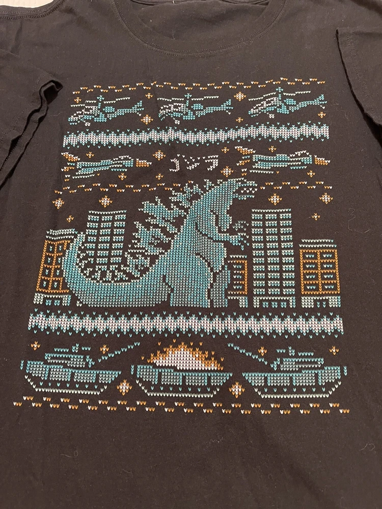 Men's 8-Bit Godzilla Graphic T-Shirt Size Large Color Black • Please look at the pictures carefully to see more details... You receive exactly what's on the pictures Disclaimer: I try my best to spot any flaws and either repair them or state them in the item’s description but everyone makes mistakes(so please also bear this in mind when purchasing!) You're looking at a men's T-Shirt with no major flaws or stains. Items are carefully inspected and sealed after photos. We cannot check additional measurements or details for you, but we do have free returns. Previous washings may change the sizing. Colors remain vivid, we store our items in a pet and smoke free environment If the item is pre-owned, it's cleaned per eBay standards. Shipping and Return Details We ship daily, and have free returns. No questions asked.