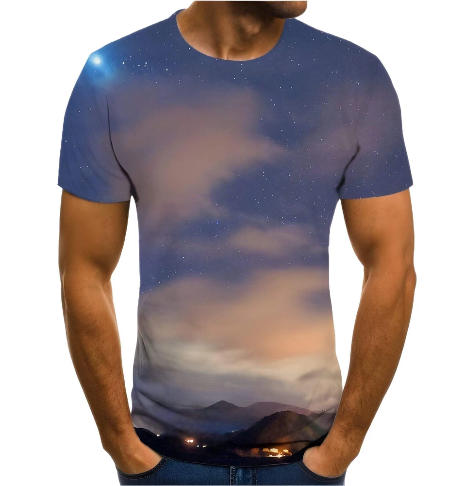 Men's Loose Fit Starry Sky 3D Printed Short Sleeve T-Shirt Round Neck Polyester Fiber Casual Tee Product information Main fabric composition: polyester fiber (polyester) The content of the main fabric ingredient: 95 (%) Pattern: Starry Sky Edition type: Loose Neckline shape: round neck Sleeve length: short sleeve Whether hooded: not hooded Thickness: General Style details: printing Size Information Size: XXS,XS,S,M,L,XL,XXL,XXXL,XXXXL,5XL,6XL Note 1. Asian Sizes Are 1 To 2 Sizes Smaller Than European And American People. Choose The Larger Size If Your Size Between Two Sizes. Please Allow 2-3Cm Differences Due To Manual Measurement. 3.As You Know, The Different Computers Display Colors Differently, The Color Of The Actual Item May Vary Slightly From The Following Images. Packing list Men's short sleeve *1 Men's Loose Fit Starry Sky 3D Printed Short Sleeve T-Shirt Round Neck Polyester Fiber Casual Tee Product information Main fabric composition: polyester fiber (polyester) The content of the main fabric ingredient: 95 (%) Pattern: Starry Sky Edition type: Loose Neckline shape: round neck Sleeve length: short sleeve Whether hooded: not hooded Thickness: General Style details: printing Size Information Size: XXS,XS,S,M,L,XL,XXL,XXXL,XXXXL,5XL,6XL Note 1. Asian Sizes Are 1 To 2 Sizes Smaller Than European And American People. Choose The Larger Size If Your Size Between Two Sizes. Please Allow 2-3Cm Differences Due To Manual Measurement. 3.As You Know, The Different Computers Display Colors Differently, The Color Of The Actual Item May Vary Slightly From The Following Images. Packing list Men's short sleeve *1 eBay integration by