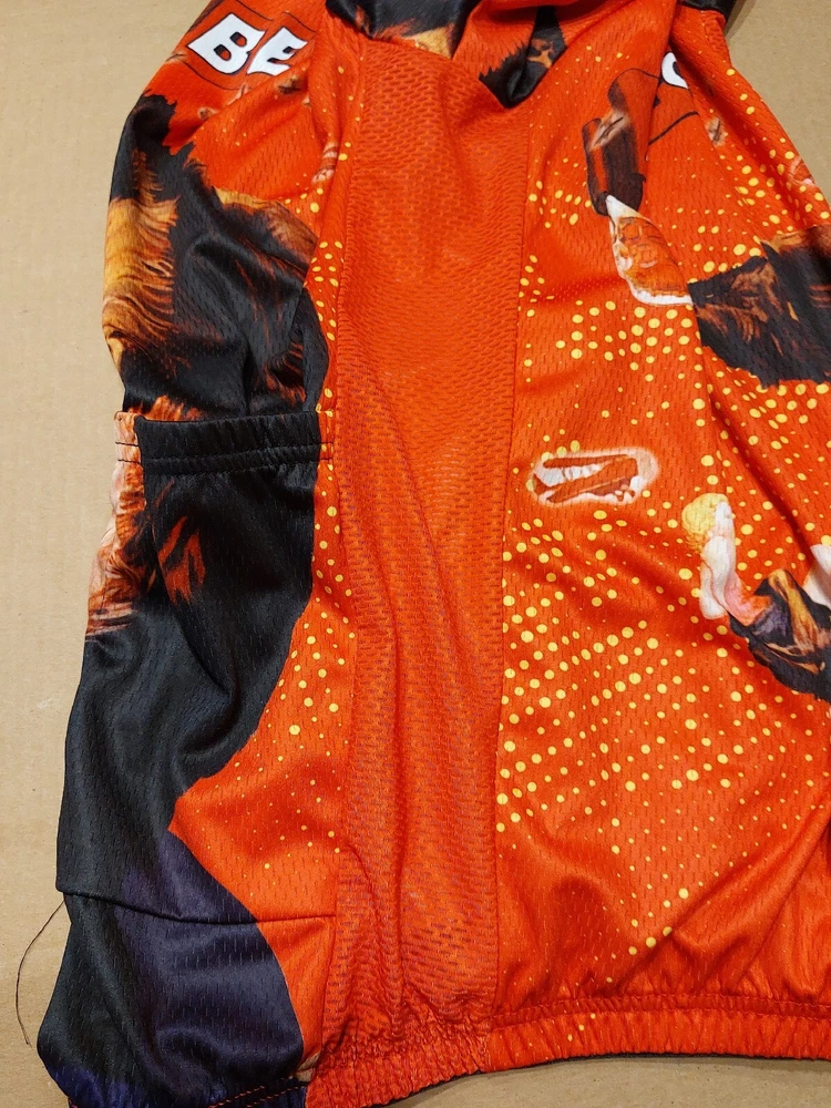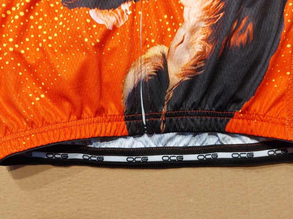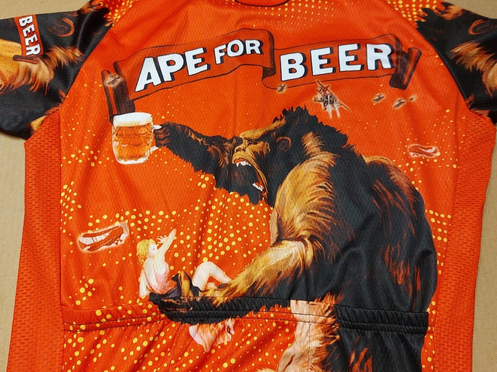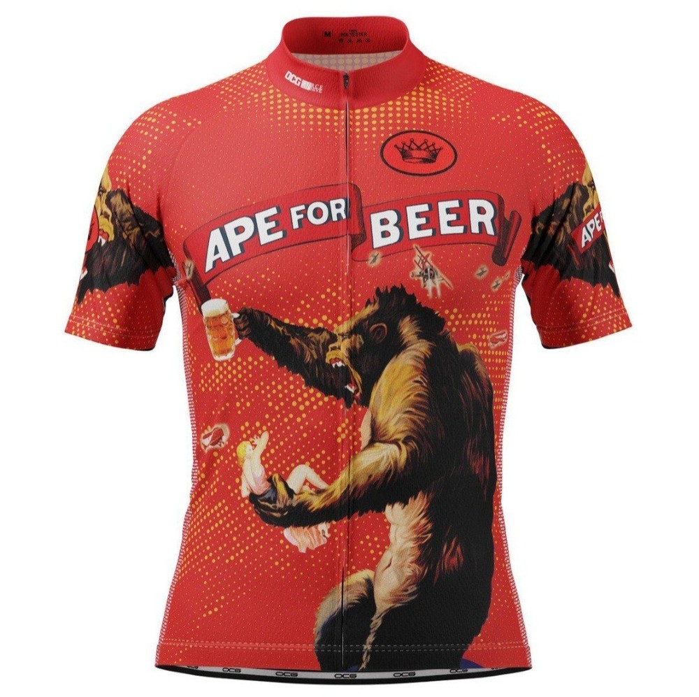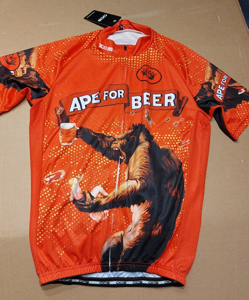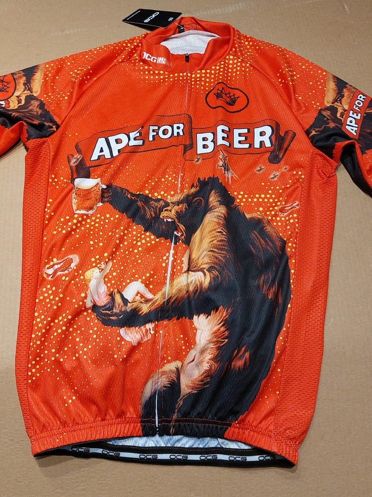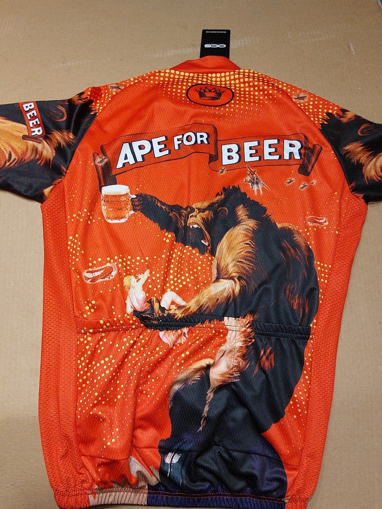 New with tag OCG Men’s Officially Licensed 1933 RKO King Kong Poster Art Ape for Beer Short Sleeve Cycling Jersey. Size Medium (chest width: 20.5 inches ). 88% Polyester, 12% Elastane. A very rare, completely sold out and discontinued officially licensed King Kong 1933 RKO movie poster art cycling jersey. Please contact me for any questions. Re: Bike Jersey Fit Please note unlike the fit of most American cycling jerseys which are at least one size smaller than a bike rider's t-shirt size, this bike jersey is true to a wearer's medium tshirt size (see measurments). Measurements Chest width: 20.5 inches Front length: 23 inches Back length: 28 inches Online Cycling Gear Product Details: OCG and The Pierce Archive have come together to bring the Men's King Kong Ape For Beer Short Sleeve Cycling Jersey so you can roll up to your next ride with confidence and style. The Men's King Kong Ape For Beer Short Sleeve Cycling Jersey features a moisture-wicking LEMBO 140 GSM polyester, cooling 110GSM mesh side panels, and reinforced stitched back pockets. Gender: Men Main Material: Durable LEMBO 140 GSM moisture-wicking polyester Side Panel Material: Cooling 110 GSM 88% Polyester, 12% Elastane lightweight mesh Pockets: Three reinforced stitched back pockets Zipper: Full-length hidden zip Collar: O-Neck zippable collar Gripper: No-irritant Silicon waist gripper Features: Quick Dry, Breathable, Anti-Pilling, Anti-Shrink, Anti-Wrinkle Print: Full-sublimation heat transfer printing ensuring long-lasting designs Care: Machine wash 30C, do not dry clean or