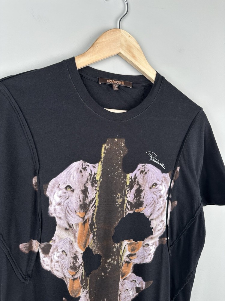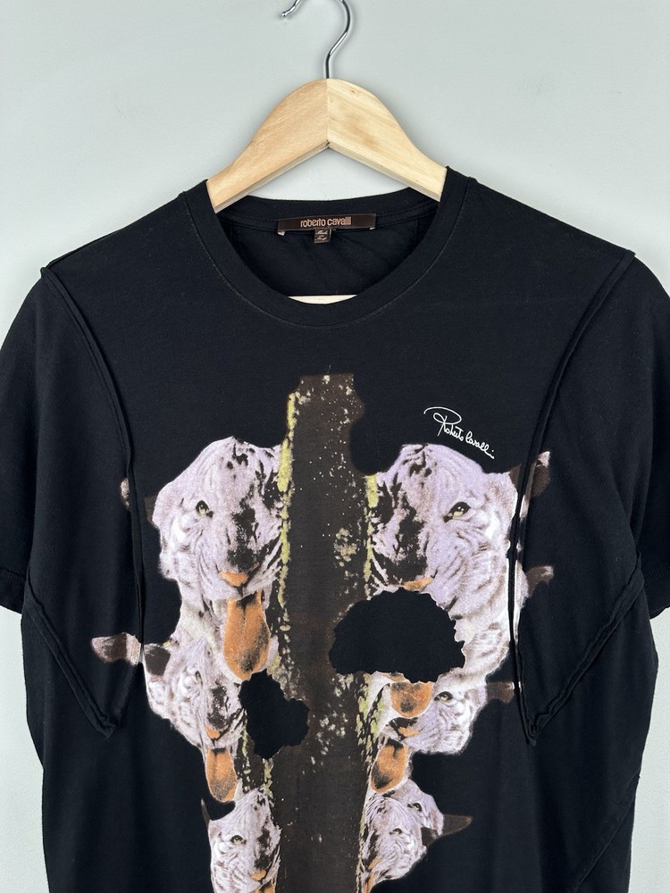 Mens ROBERTO CAVALLI Tiger Graphic Print Tee Black. Condition Used / slight signs of wear Size Tag - not label size, like M ( check please measurements ) Length on the back - 26.7’’ ( 68 cm ) Pit to Pit - 20’’ ( 51 cm ) Shoulder to shoulder - 15.7’’ ( 40 cm ) We have combo shipping, FOLLOW to our store and stay up to date with NEW ITEMS !