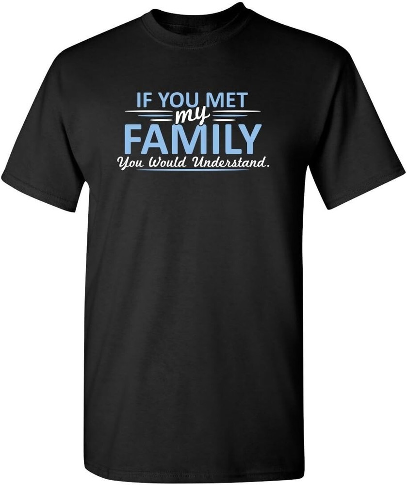 Met My Family Would Understand Humor Graphic Novelty Sarcastic Funny T Shirt FREE SHIPPING! FAST DELIVERY! DOMESTIC SHIPPING! Delivery from 3 to 7 business days! Features and further details Stay classy and unique with custom cotton and a pretty thick t-shirt. The print on demand t-shirt is designed with a crew neckline, short sleeves for better comfort, taped neck and shoulders, and double-needle sleeves for enhanced durability. It?s a good choice for both men and women. Material: 5.3 oz/yd², Dark Heather, Graphite Heather, Heather Navy, Heather Red, Tweed (50% cotton, 50% polyester); Sport Grey, Antique Irish Green, Antique Orange, Antique Sapphire (90% Cotton/10% polyester), Ash (99% Cotton/ 1% Polyester), All Others (100% cotton). Classic, unisex fit - Comfortable to wear and suitable for anyone to wear. Non-stitched, classic width, rib collar. Printing technique: Direct to Garment. Color: Ash, Black, Charcoal, Dark Chocolate, Dark Heather, Forest Green, Gold, Ice Grey, Irish Green, Kiwi, Light Blue, Light Pink, Maroon, Military Green, Navy, Orange, Purple, Red, Royal, Sand, Sport Grey, Tropical Blue, Turf Green, White, Antique Irish Green, Antique Orange, Antique Sapphire, Azalea, Cardinal Red, Carolina Blue, Cobalt, Coral Silk, Cornsilk, Daisy, Graphite Heather, Heather Navy, Heather Red, Heliconia, Lime, Natural, Sapphire, Tweed. Size: S, M, L, XL, 2XL, 3XL, 4XL, 5XL. Blank product: Gildan 5000 Shipping We shipping from US for all orders! We offer FREE shipping on all orders! We ship within Three business days of payment, usually sooner. We use a selection of shipping services such as UPS, FedEx, USPS etc. We only ship to the lower 48 states, no APO/FPO addresses or PO Boxes allowed. Local pickups and combined shipping options are not provided at this time. Feedback Customer satisfaction is very important to us. If you have any problem with your order, please contact us and we will do our best to make you satisfied. Contact Us If you have any queries, please contact us via ebay. We usually respond within 24 hours on weekdays. Please visit our store to check out other items for sale! Thank you for shopping at our store.