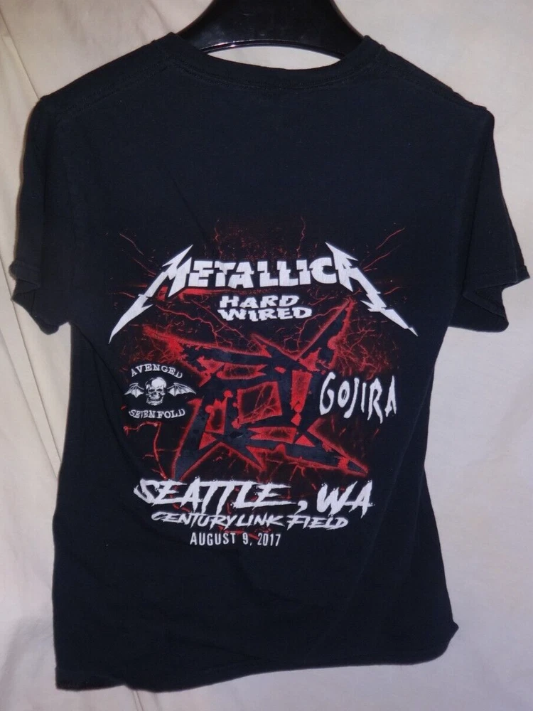 Metallica Hardwired Self Destruct Tour Seattle WA Gojira Avenge Sevenfold Shirt. Very rare exclusive to the Seattle WA show at Century Link Field. No rips, holes or stains Tagged a size SMALL. Measures approx 20" from pit to pit and 27" in length.