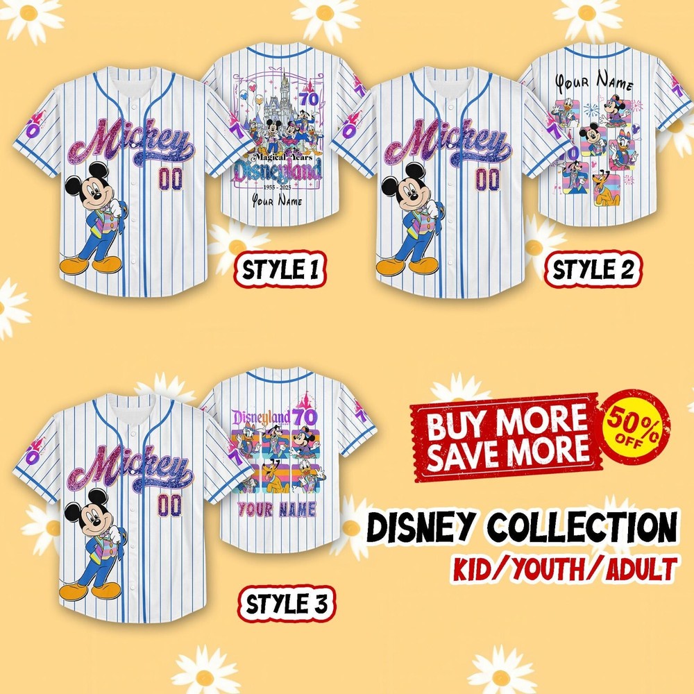 Mickey Mouse 70th Disneyland Baseball Jersey for Family Vacation Gift Men Women Kids NEW