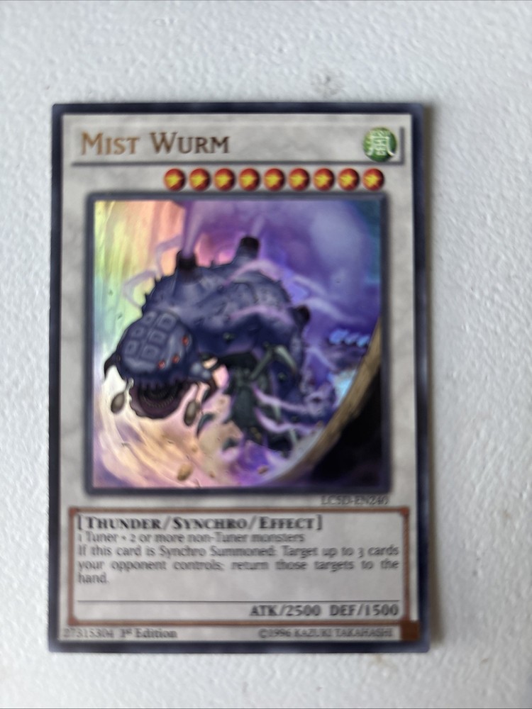 The Mist Wurm LC5D-EN240 is a highly sought-after Yu-Gi-Oh! TCG card from the Legendary Collection 5D's 1st Edition set. As a Wind attribute card with a Thunder monster type, it boasts impressive stats with a defense of 1500 and an attack power of 2500. Manufactured by Konami, this Ultra Rare card features a foil finish and is in near mint condition. Perfect for collectors and players alike, the Mist Wurm is a valuable addition to any card collection.