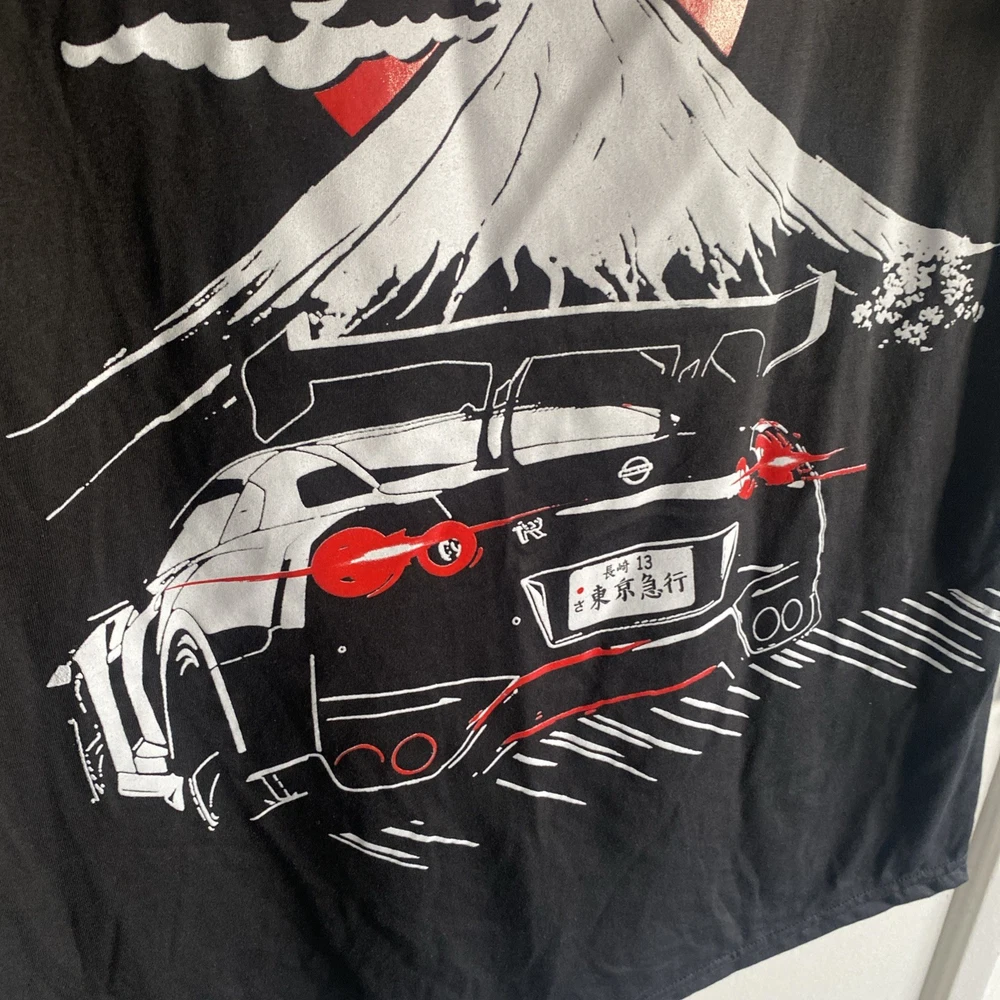 The Nissan GTR Logo Graphic Print Black T-Shirt in Men's Size XXL is a stylish and comfortable garment perfect for any car enthusiast or fan of Godzilla. Made from cotton knit fabric, this short sleeve shirt features a crew neckline and a regular fit. The graphic print accents showcasing the Nissan GTR logo and Godzilla character add a unique touch to the design. With its tagless feature and machine washable care instructions, this t-shirt is both practical and easy to maintain, making it a must-have addition to any wardrobe.