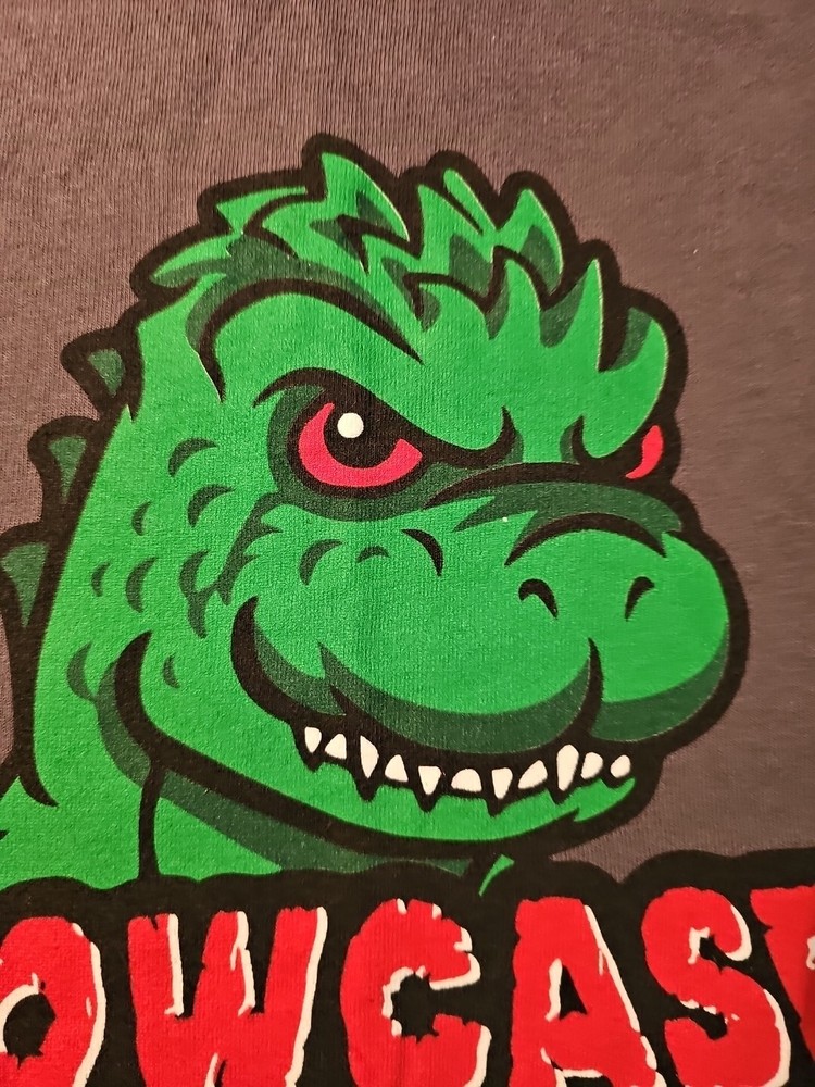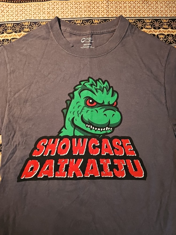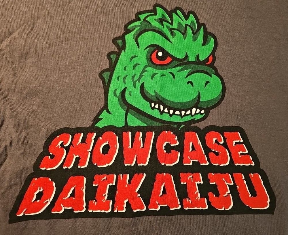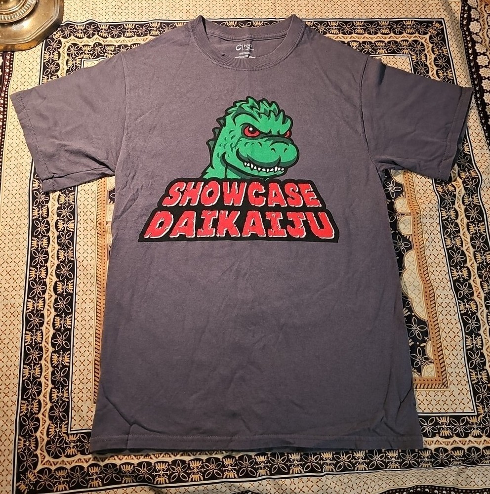 NEW WITHOUT TAGS " SHOWCASE DAIKAIJU " T-SHIRT **SUPE RARE ORIGINAL ITEM** *new without tags condition* Size - ADULT UNISEX - Small SHIRT MEASUREMENTS shoulder to shoulder width - 16 1/2 inches pit to pit width - 17 inches top of back collar to waist hem length - 28 inches ----------------------------------------------------------- Thanks for looking at my offerings. The item(s) in photos is/are the item(s) you will receive. Feel free to ask any questions. Cheers!