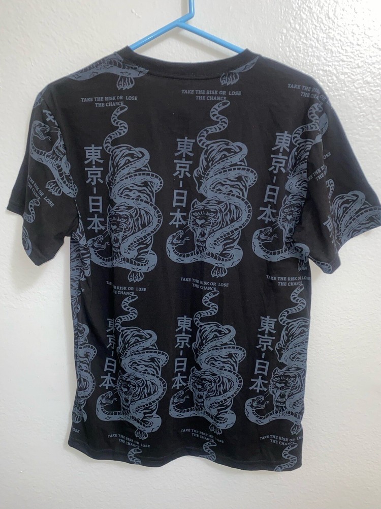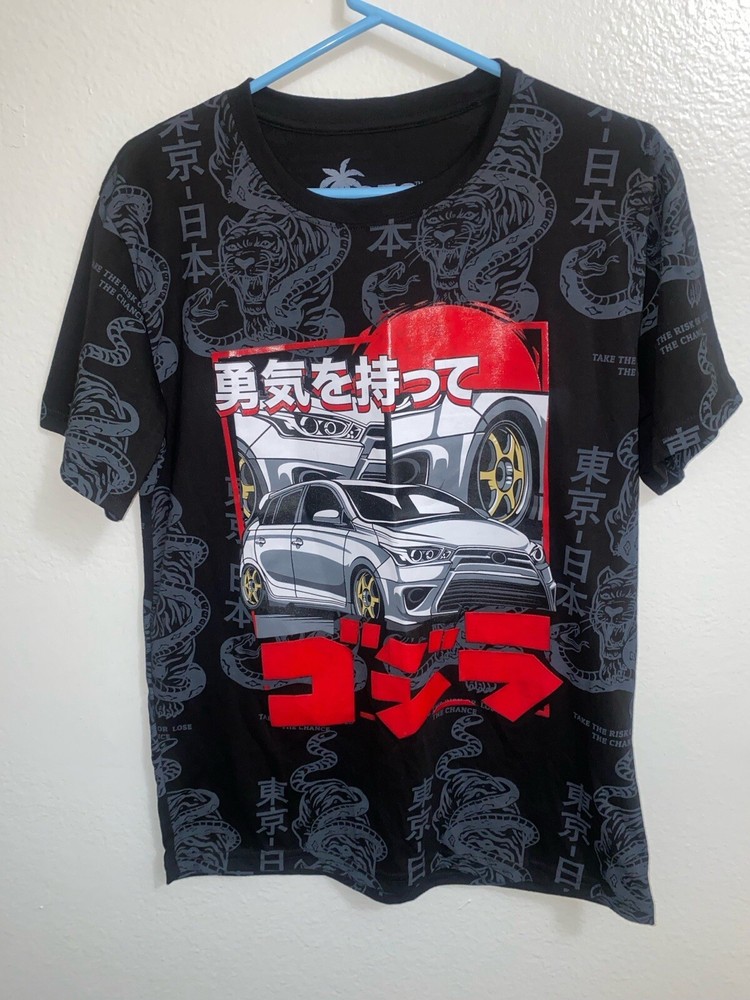 This VIBES brand T-shirt features a bold GODZILLA graphic in honor of Tokyo, Japan. Made for men in size M, this shirt is perfect for fans of the iconic monster and Japanese culture. The shirt is new without tags and is ready to be worn and displayed with pride. The shirt is a great addition to any collection of clothing, shoes and accessories, and is sure to make a statement wherever it is worn. It is made of high-quality materials and is sure to last a long time. Don't miss your chance to add this unique shirt to your wardrobe!