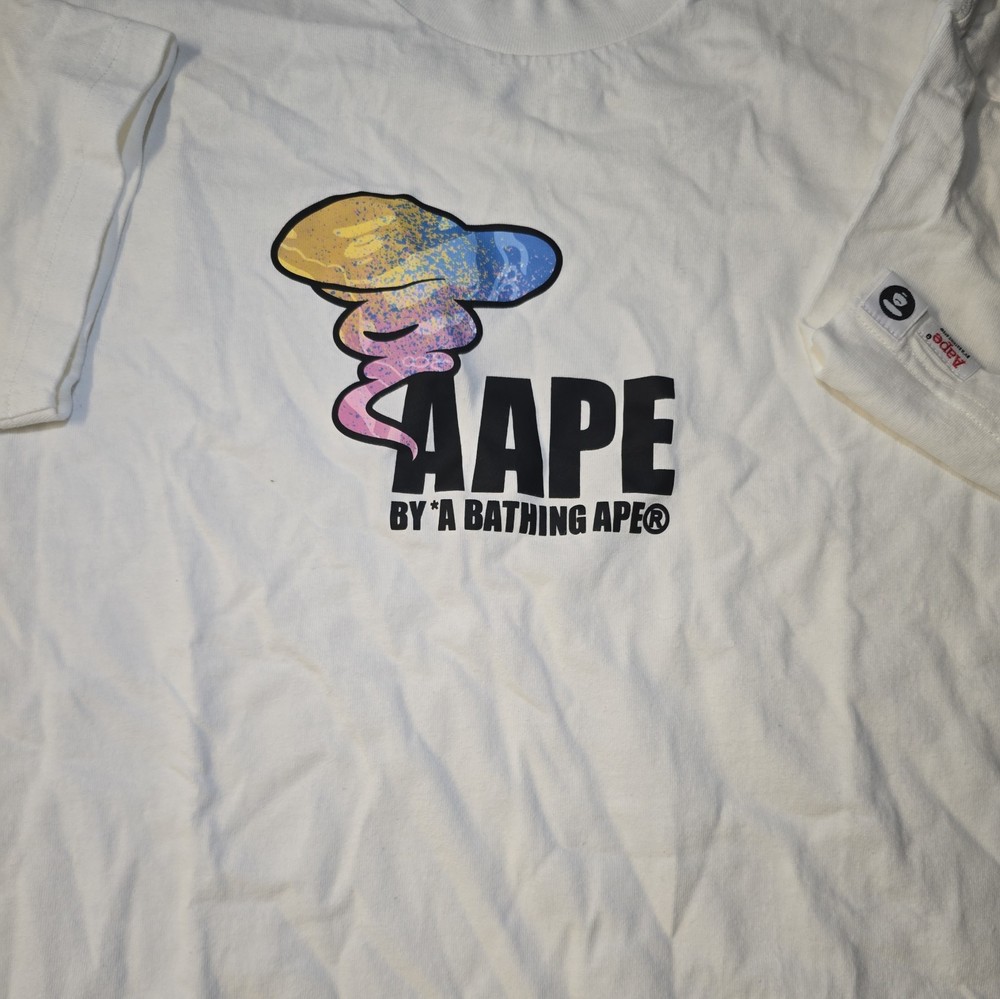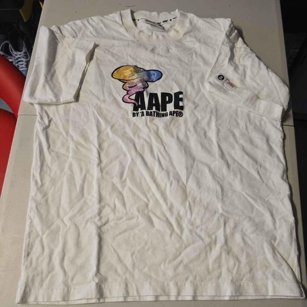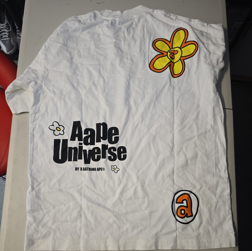 NWT AAPE by A Bathing Ape White Floral Logo RARE Graphic T-Shirt Sz M...