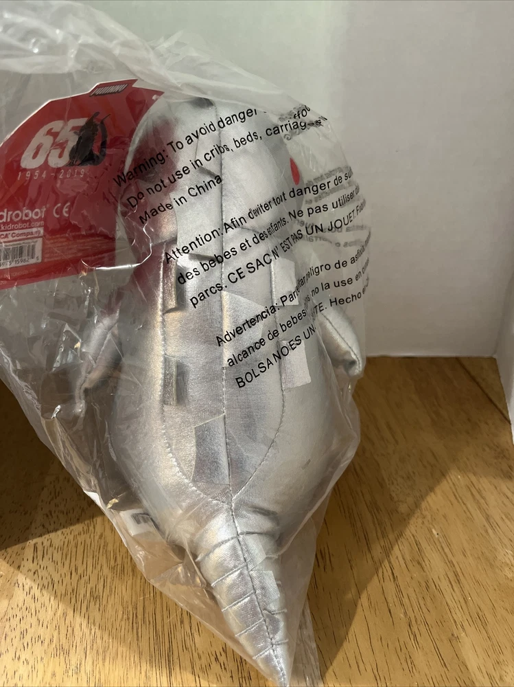 This 8-inch plush toy is a must-have for any Godzilla fan! It features the iconic Mechagodzilla theme and is made by Kidrobot, a well-known brand in the toy industry. The silver color gives it a sleek and stylish look, and it is suitable for ages 8 and up. This toy is perfect for collectors or for playtime, and it is sure to impress anyone who sees it. Made in China in 2020, this NECA Mecha Godzilla plush is a great addition to any collection.