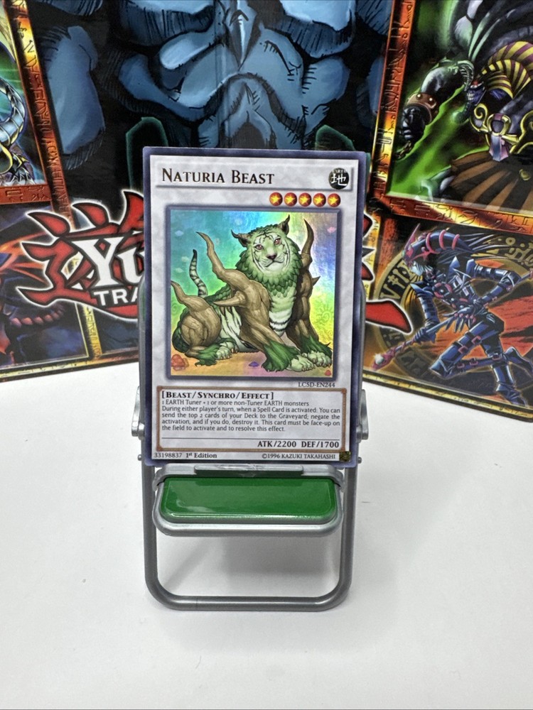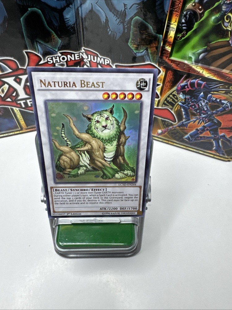 2.Elevate your Yu-Gi-Oh! TCG collection with the formidable Naturia Beast, from the Legendary Collection 5D's set. As an effect/Synchro monster, it brings a unique dynamic to the game, enhancing your strategic options. With its impressive 1700 defense and 2200 attack, this Ultra Rare beast is a force to be reckoned with during duels. The card, numbered LC5D-EN244, boasts its 1st Edition status, making it a sought-after piece for collectors and players alike. Manufactured by Konami and presented in English, it's a must-have for any serious Yu-Gi-Oh! enthusiast seeking to bolster their deck with a powerful Earth attribute creature.