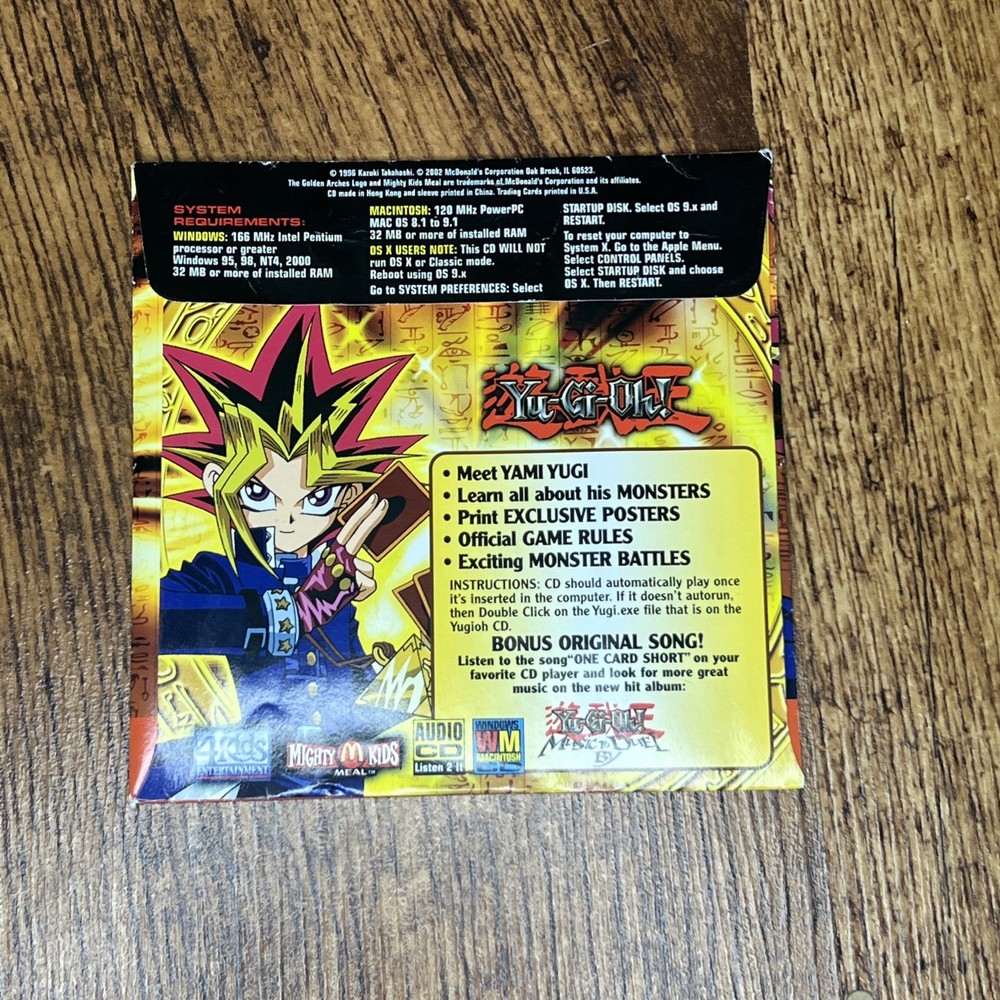 This CD is a nostalgic gem for Yu-Gi-Oh! fans—pure 2002 vibes straight from the McDonald's promo! Perfect for collectors who love rare anime merch, though no cards are included. The music brings back childhood memories, and it’s a cool piece for any fan display. Grab it if you spot one!