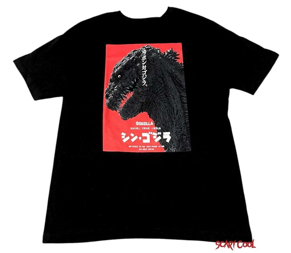 New Godzilla Japanese Kanji Black Classic Mens Vintage Throwback T-Shirt