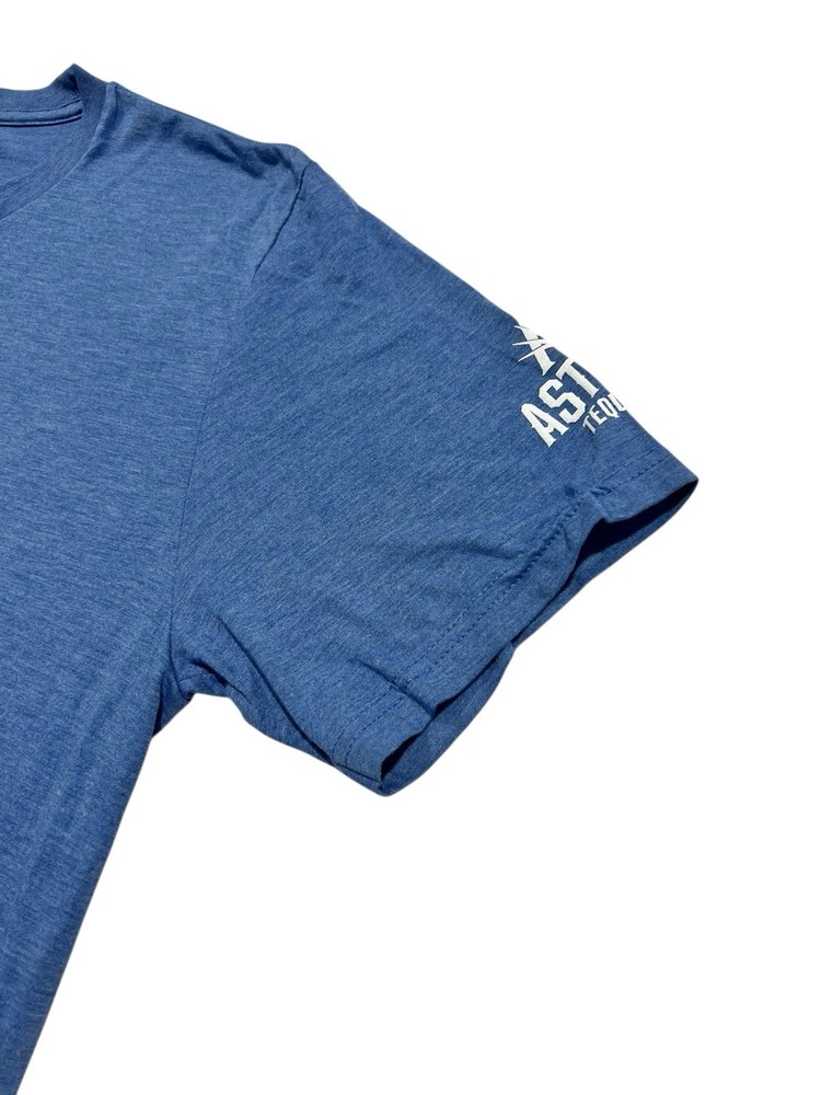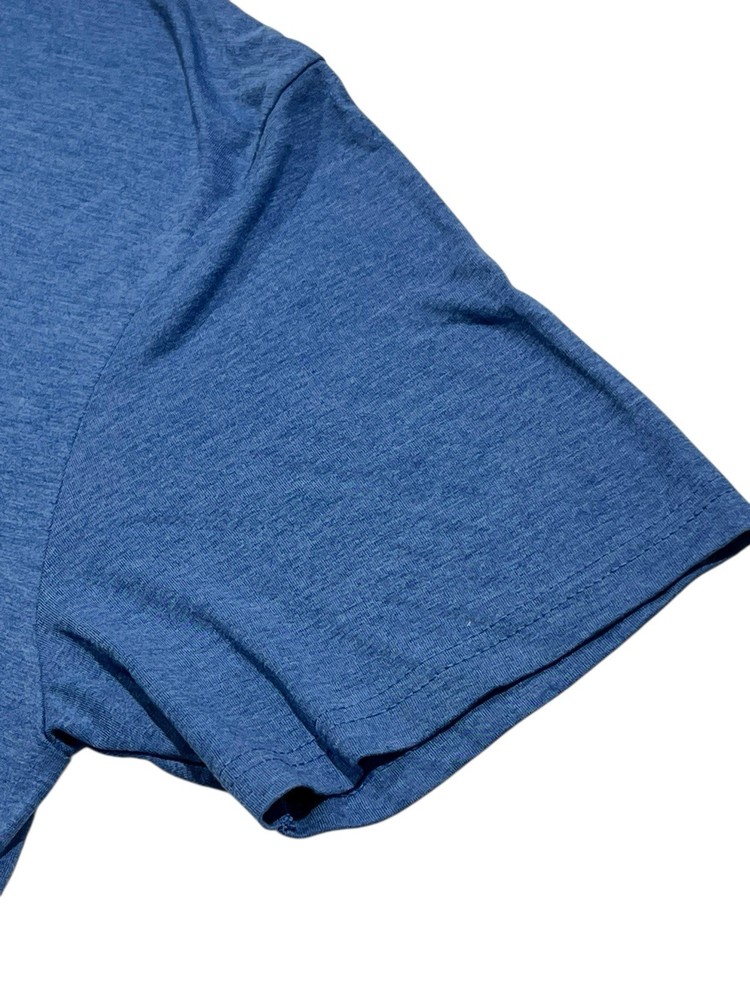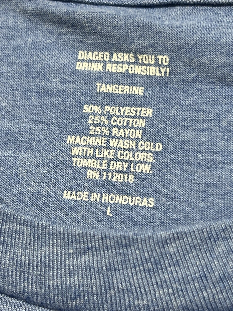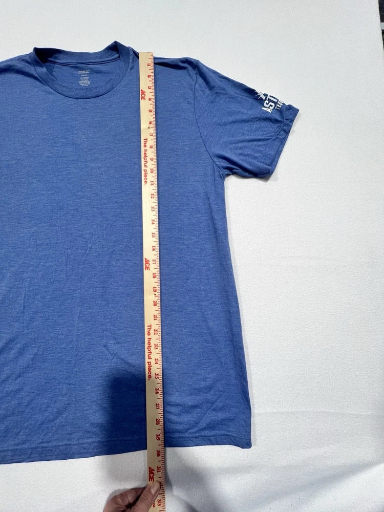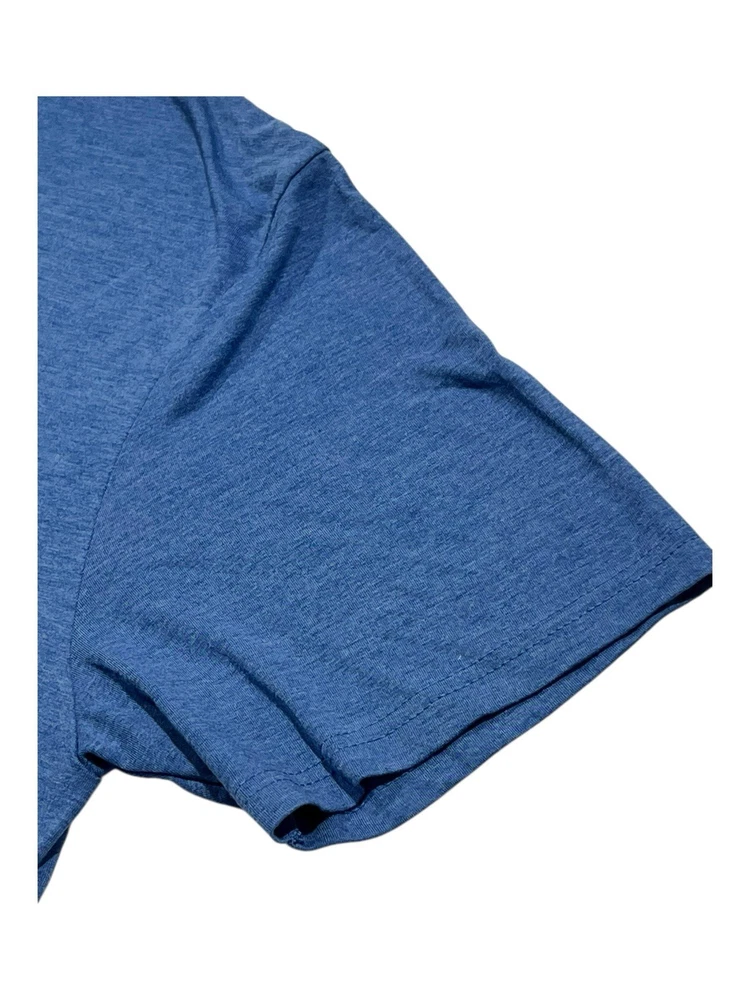 Elevate your casual wardrobe with this trendy blue graphic tee shirt. Featuring a crew neck and short sleeves, this shirt is made of a comfortable blend of cotton, polyester, and rayon. The shirt is preshrunk and easy to care for, making it a perfect choice for all seasons. The shirt's solid blue color is complemented by a logo graphic that adds an accent of character to the shirt. The shirt is unisex and fits regular size.
