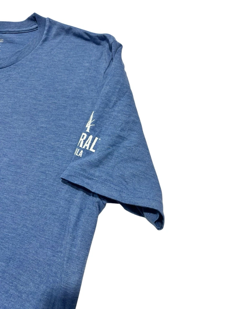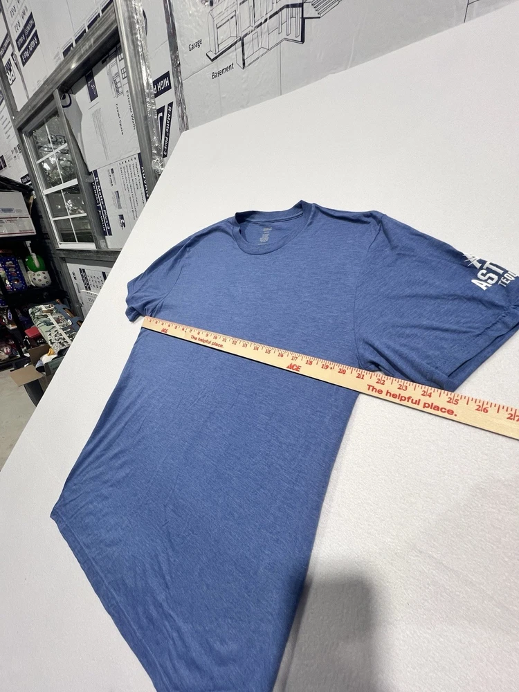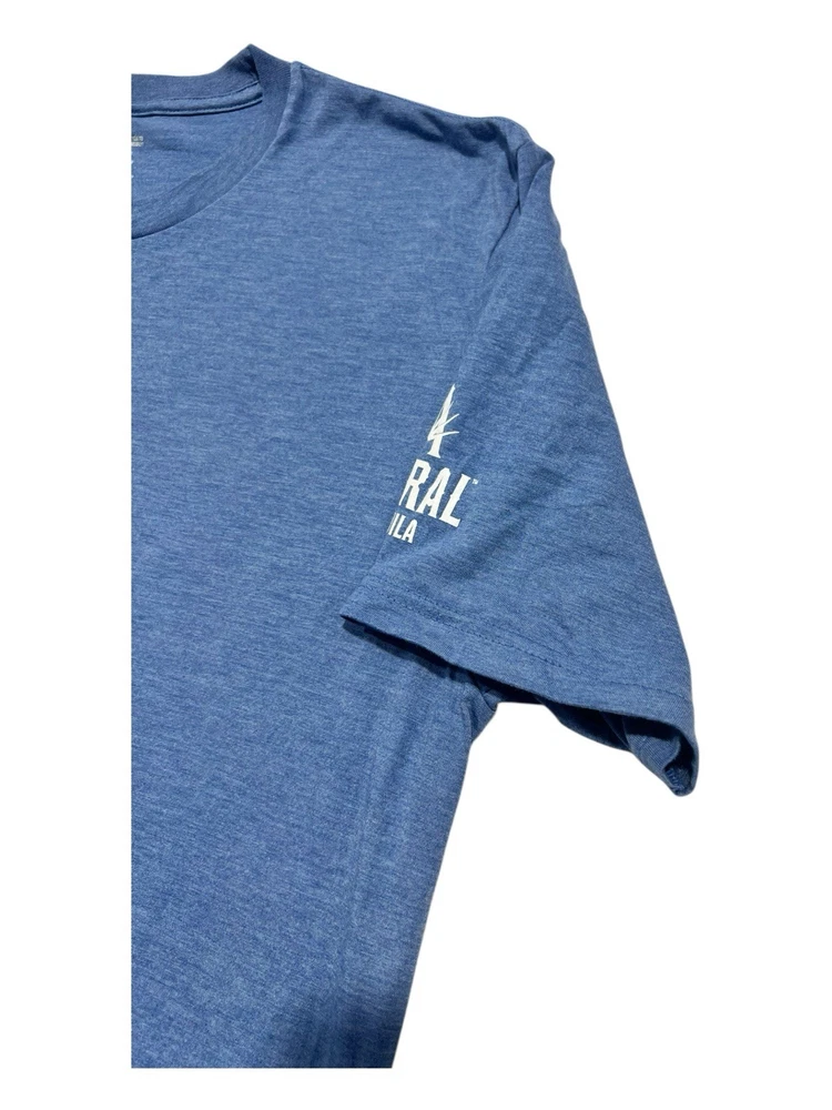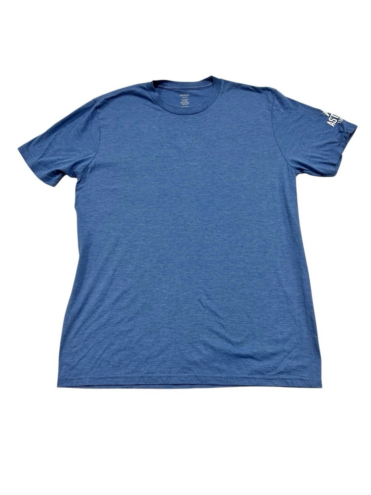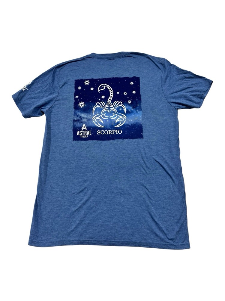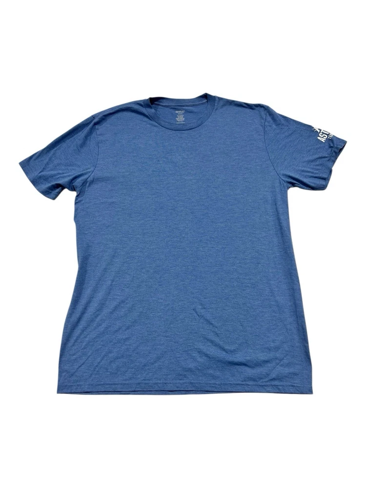 Elevate your casual wardrobe with this trendy blue graphic tee shirt. Featuring a crew neck and short sleeves, this shirt is made of a comfortable blend of cotton, polyester, and rayon. The shirt is preshrunk and easy to care for, making it a perfect choice for all seasons. The shirt's solid blue color is complemented by a logo graphic that adds an accent of character to the shirt. The shirt is unisex and fits regular size.