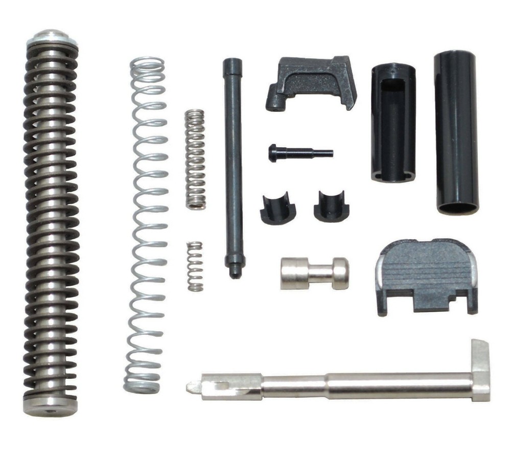 Please Note: Due to lighting effects and monitor's brightness/contrast setting etc, the color tone of the website's photo and the actual item could be slightly different. PRODUCT DESCRIPTION Features Complete frame upper parts kit for the Gen 1-3 GLOCK 19 (does not include slide or barrel) Compatible with PF940C Frame Channel Liner Extractor Firing Pin Safety & Spring Slide Cover Plate Extractor Depressor Plunger Spring Spring Loaded Bearing Firing Pin Safety Firing Pin Spring Spacer Sleeve Firing Pin Spring Cups Stainless Steel Guide Rod 1x Free Red Fiber Glock Front & Rear Sight - Front sight screw included(Choose your color from drop down menu) One free bottle opener comes with per order. Random color selection. SHIPPING · We ship to U.S. addresses ONLY, including Hawaii, Alaska, PR, GU, APO/FPO · Ship from California by USPS · Order will be shipped within 1 business day after payment is cleared. Notification of tracking number will be sent to buyers · Order placed after Friday 12pm will be shipped on next Monday (Or Tuesday if Monday is a holiday) · Delivery Time: Free Shipping 3-7 business days ; Expedited Shipping 1-3 business days ; APO/FPO 7-15 business days · Local pick up is not available RETURN POLICY · We have a 30-day return period · Please read product description first before placing an order to avoid purchase by mistake. Please feel free to contact us if you have any questions. · If for any reason you are not satisfied with the product when you receive it, please CONTACT US FIRST and we will offer the best solution, and assign a return number and instruction if you need to return it. · All goods must be returned complete and in the same condition as received with the original box and packaging in an undamaged condition. · Please place a note inside with your returned item(s) to explain the reason for return and include contact details so that we can keep you informed. Let us know whether you are seeking an exchange or a refund. · I t can take three to four days after we have processed a refund payment for it to appear on your credit card statement or the original payment method used.