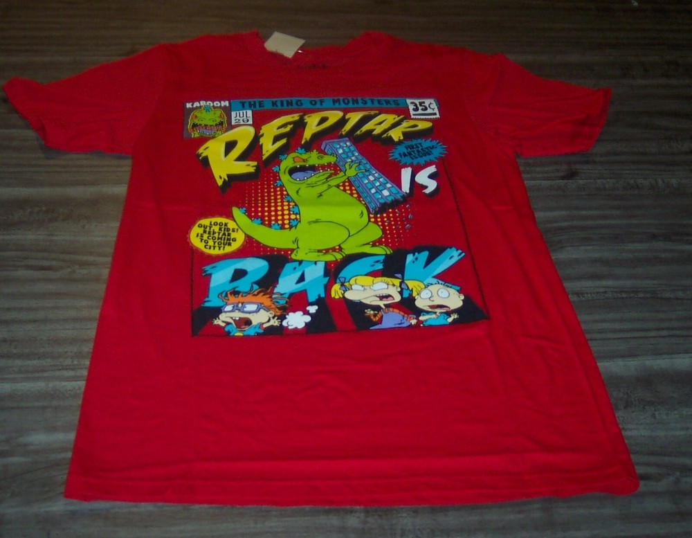 This is a Nickelodeon Rugrats REPTAR DINOSAUR as Godzilla T-shirt. It is a size SMALL, and it is NEW with the tag. It is 18 inches from armpit to armpit and 29 inches in length. Combine auctions to save on shipping. D3AD ~~~~~~~~~~~SMOKE FREE HOME!!~~~~~~~~~~~