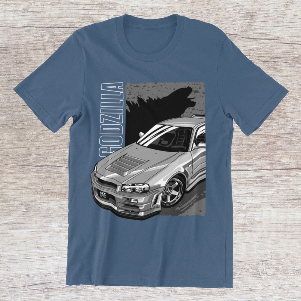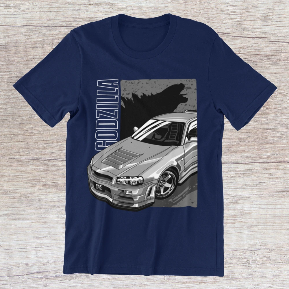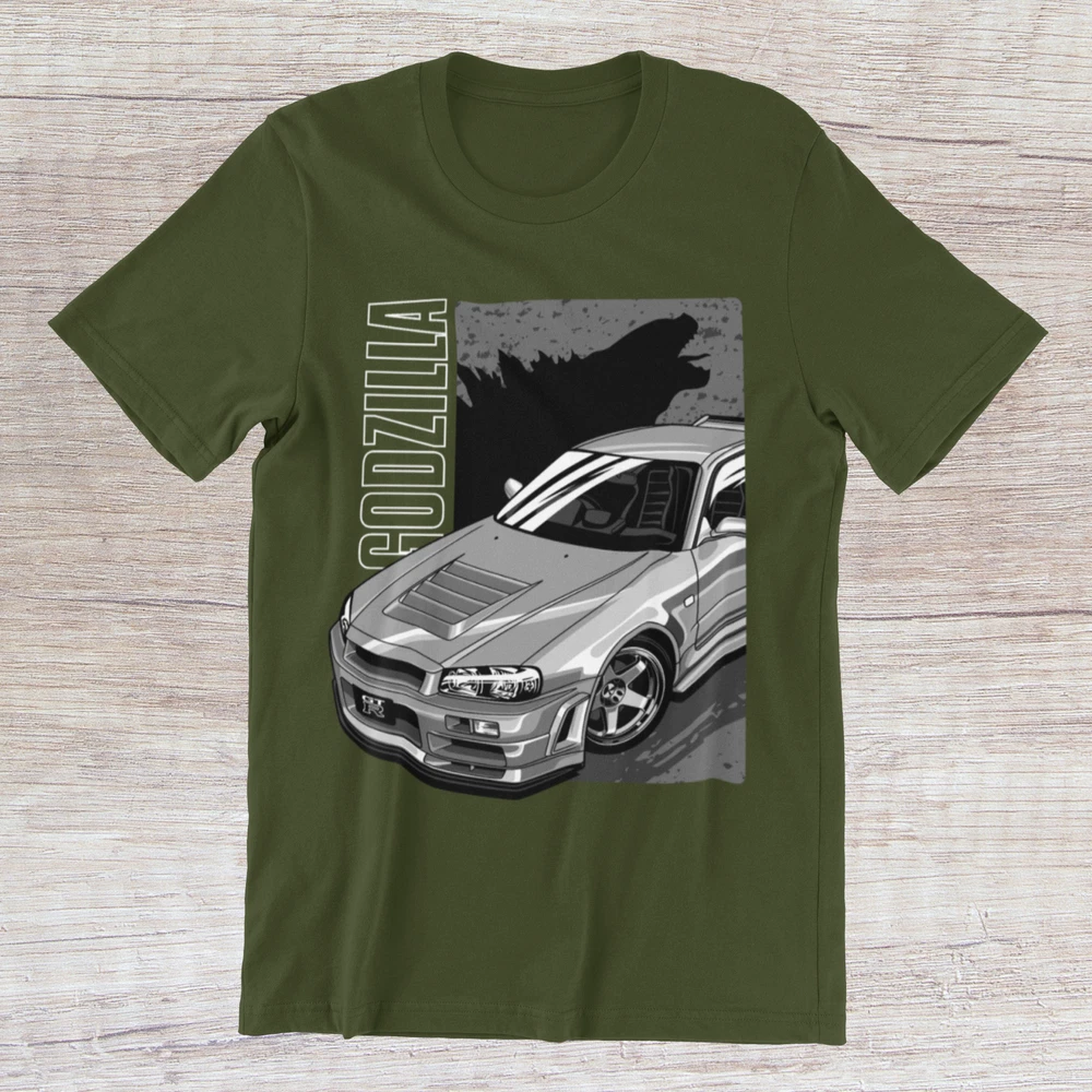 Godzilla R34 T-Shirt Proudly printed in the USA. We are expert printers who can provide long lasting crisp graphics that won't peel or fade. Prints are sized according to each t-shirt size to ensure the best possible look. Unisex 100% ringspun cotton tees (4.5 oz) for a softer hand feel to the print and fabric. Retail Fit Custom shirts, Wholesale and Bulk discounts also available - Message Us 30 Day Returns. Buy with confidence Ships worldwide within 1 day