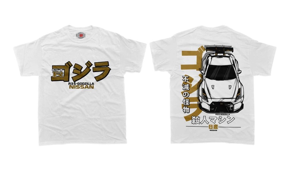 Introducing the Nissan R35 GT-R "Godzilla" T-Shirt - a homage to the legendary supercar that reigns supreme on both the road and the track. Crafted with meticulous detail, this unisex shirt celebrates the fearsome power and iconic status of the Nissan R35 GT-R, fondly known as "Godzilla" among enthusiasts. Crafted from premium 100% cotton, this shirt offers a soft and comfortable feel against your skin, ensuring all-day comfort whether you're cruising the streets or revving up at a car meet. Breathable and durable, it's the perfect choice for showcasing your admiration for automotive excellence in any setting. The design features a captivating graphic showcasing the fierce silhouette of the Nissan R35 GT-R, capturing the essence of its relentless performance and unmistakable presence. From its aggressive front grille to its sleek profile, this shirt pays homage to the legacy of one of Nissan's most iconic models. Whether you're a die-hard GT-R fan or simply appreciate the thrill of high-performance driving, the Nissan R35 GT-R "Godzilla" T-Shirt is a versatile addition to your wardrobe. Wear it proudly and let your passion for legendary cars shine wherever you go.