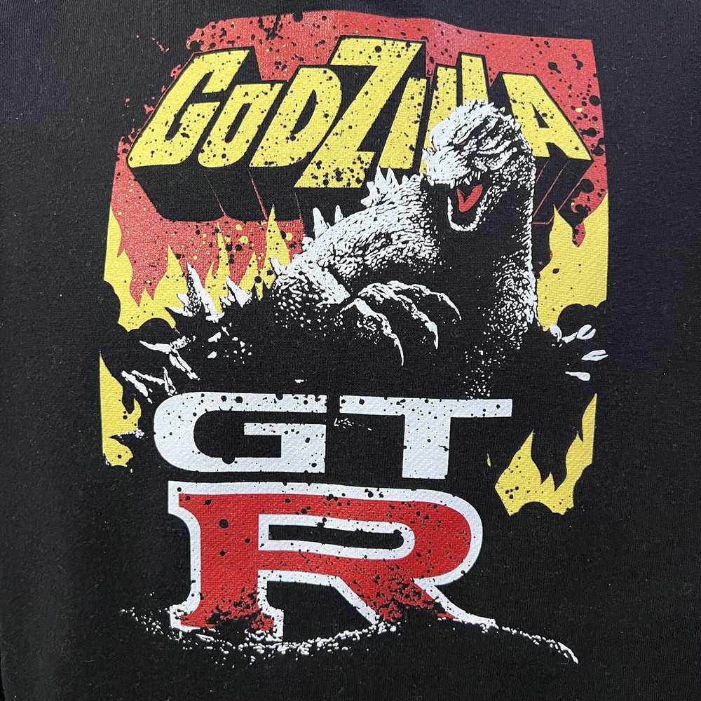 TUNER CULT Nissan Skyline R32 Nismo x GODZILLA graphic print black heavyweight fleece hoodie pullover sweatshirt. EUC, no major flaws. See photos for more descriptive details & approx measurements. Men's size MEDIUM