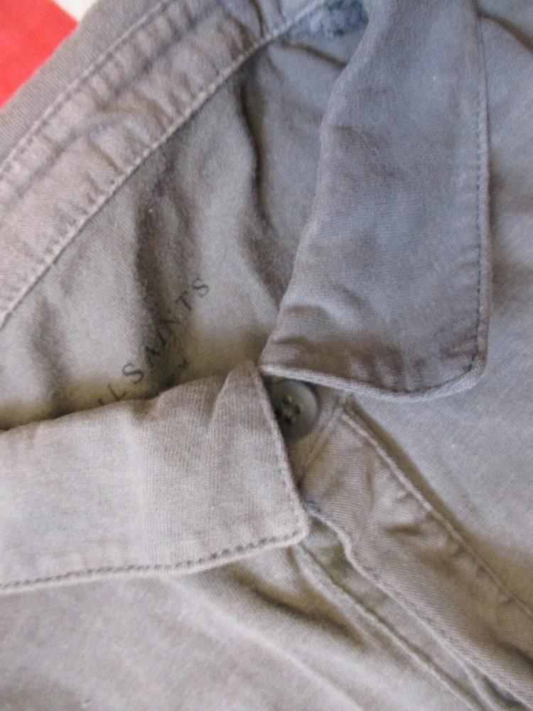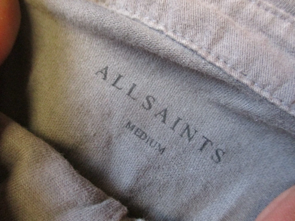 A AWESOME REAL GENUINE ORIGINAL ALL SAINTS ...... MANS CLASSIC brace SS POLO / T SHIRT FEATURES = CLASSIC POLO DESIGN MADE FROM T SHIRT MATERIAL , BUTTON NECK AND COLLAR COLOUR = grey SIZE = LABEL SAYS MEDIUM . but it might also fit a SMALL as seems a close tight fit like all saints iTems are but please go off measurements AND IT MEASURES 20" OR 51 CM ARM PIT TO PIT SEAM ON THE OUT SIDE / 25 1/2" LONG COLLAR TO HEM / sleeve length 2 1/2" arm pit to end / 17" SHOULDER TO SHOULDER / ( NOW PLEASE MEASURE YOUR OWN SELF OR JACKET TO BE SURE OF FIT AND SIZE SAVE HAVING TO RETURN IT BECOUSE IT DOES NOT FIT YOU ) NO RETURNS ON SIZE ISSUES ITS MESURED HERE . .ITS A REAL ONE N COST £49.99 WHEN NEW PLEASE BE SURE OF ITEM / SIZE / FIT / COLOUR / CONDITION BEFORE BUYING !!! TO STOP ANY DISAPOINTMENT WHEN YOU GET IT AND RETURNS !!! PAYMENT WITHIN 2 DAYS ANY NONE PAYER WILL GET A NONE PAYER STRIKE AGIANST THEM . PLEASE BE SURE OF SIZE AND MEASURE YOUR OWN TOP TO BE SURE BEFORE BUYING ITEM