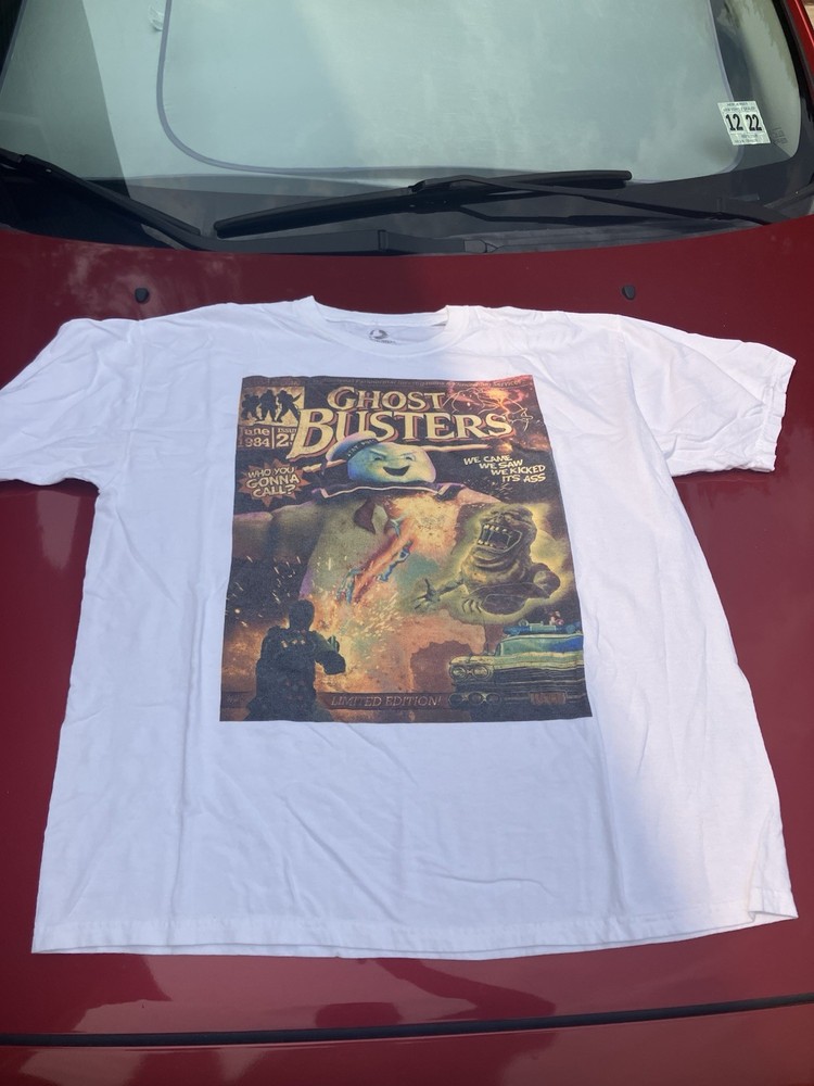 Very cool white XL Ghostbusters shirt! The design depicts a mock up comic book cover! Check out all my cool and vintage shirts! BUY BUY