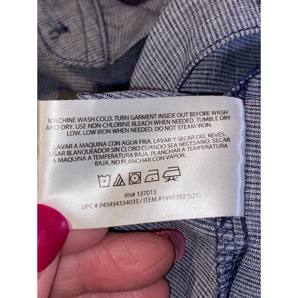Just got this shirt and it fits perfectly! The fabric is super comfortable, the blue color looks great, and I love the handy pockets. Perfect for casual outings!