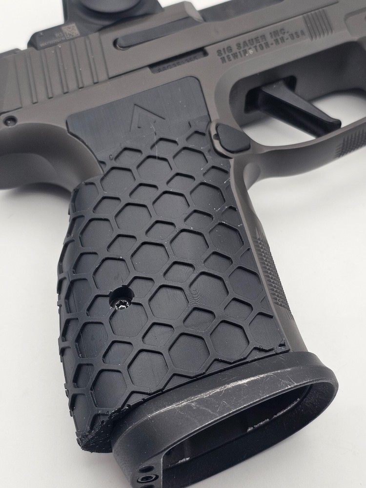 Product Description: Elevate your firearm’s performance with Lambda Polymer Grip Panels , engineered for shooters who demand uncompromising control, all-weather reliability, and a refined ergonomic experience. Each panel is crafted in Colorado from high-strength impact-resistant polymer and precision-fit to your platform for a secure, drop-in installation. Now introducing the “Fatboy” — a full wraparound grip panel designed for shooters who prefer a more substantial, glove-filling grip profile. The Fatboy enhances weapon control with continuous side-to-front coverage and deep contouring that locks your hand into position. Features: ✅ Impact-Resistant Polymer Construction Tough, rugged material designed to endure field use, competition, and carry. ✅ Precision Surface Texture Manufactured for superior grip retention in any condition—wet, gloved, or bare-handed. ✅ Seamless Drop-In Fit Designed for direct installation on compatible frames—no modification needed. ✅ Tactical Finish Options Available in matte black in a variety of designs. ✅ “Fatboy” Full Wraparound Grip -Continuous side + front strap coverage -Deep, glove-filling contours for a locked-in feel -Ideal for shooters seeking enhanced control and surface area ✅ Crafted in Colorado Family-owned, American-made, and built with pride. Fitment: Compatible with: -Sig Sauer P365 AXG Frames (Black and Legion) -Icarus P365 Frame -Custom models available by request 📩 Need custom design or Fatboy fitment for your platform? Contact us — we’re happy to help.
